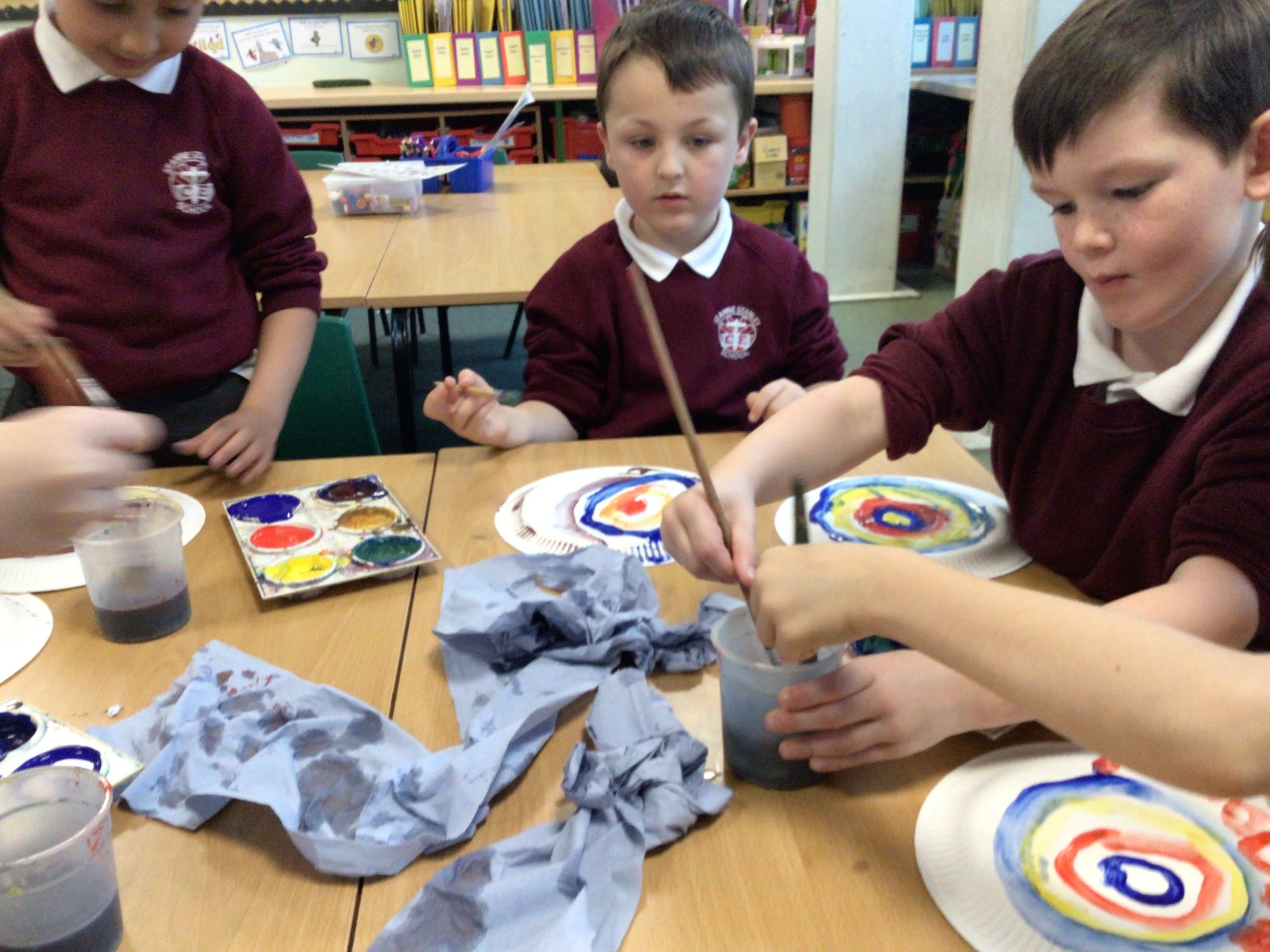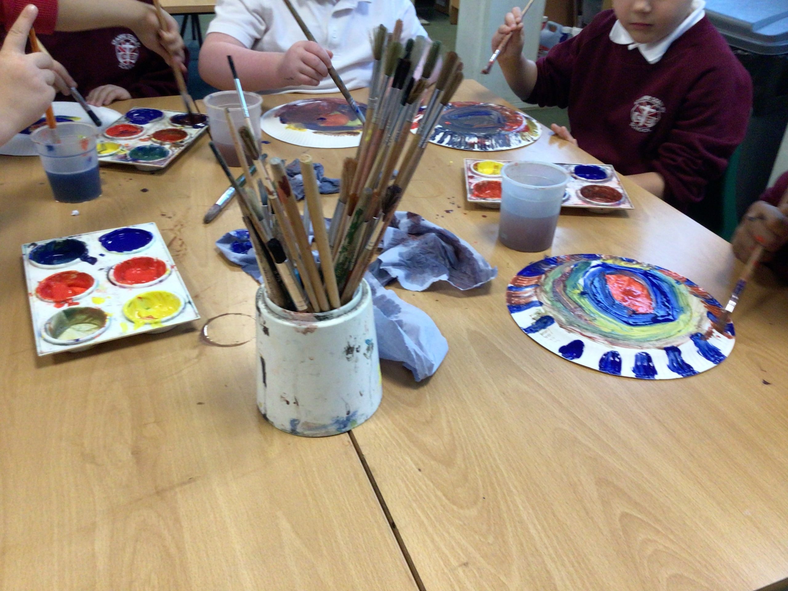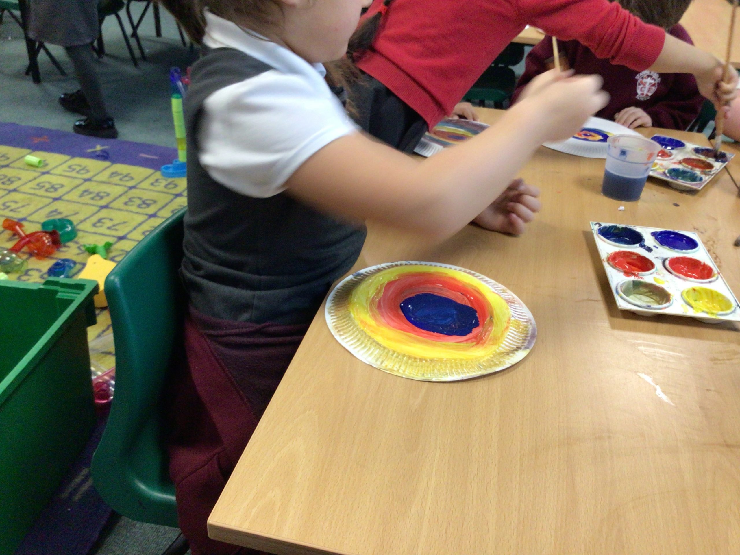 We have used our knowledge of primary and secondary colours to create a circle design based on the work of Clarice Cliff