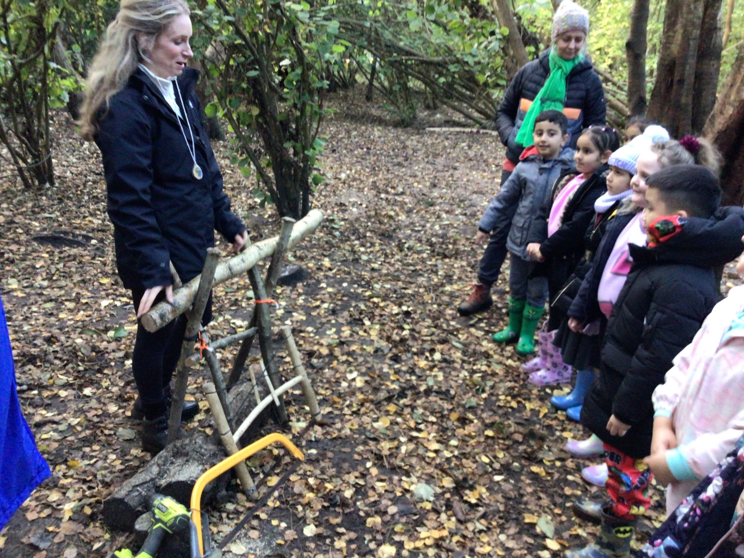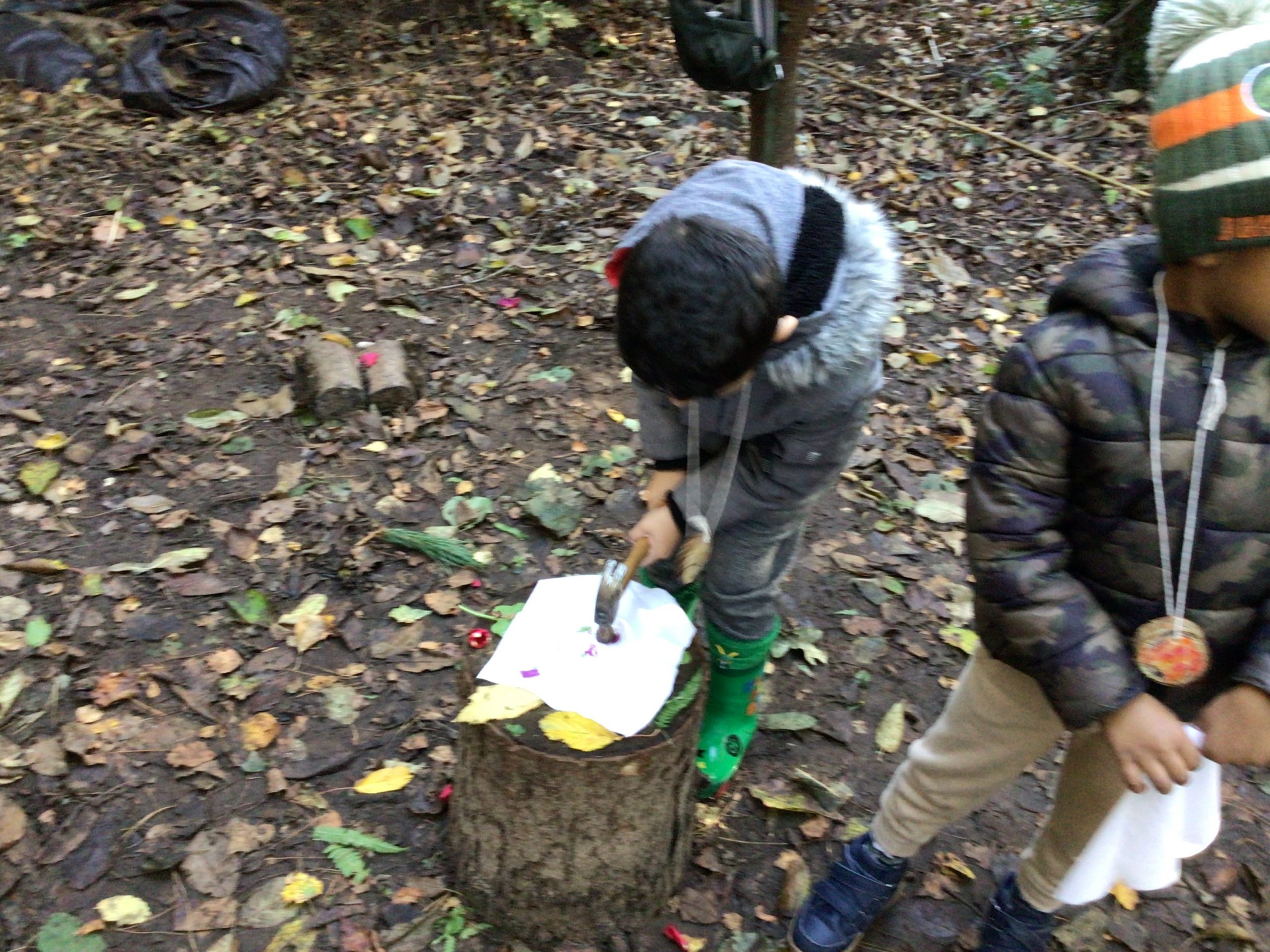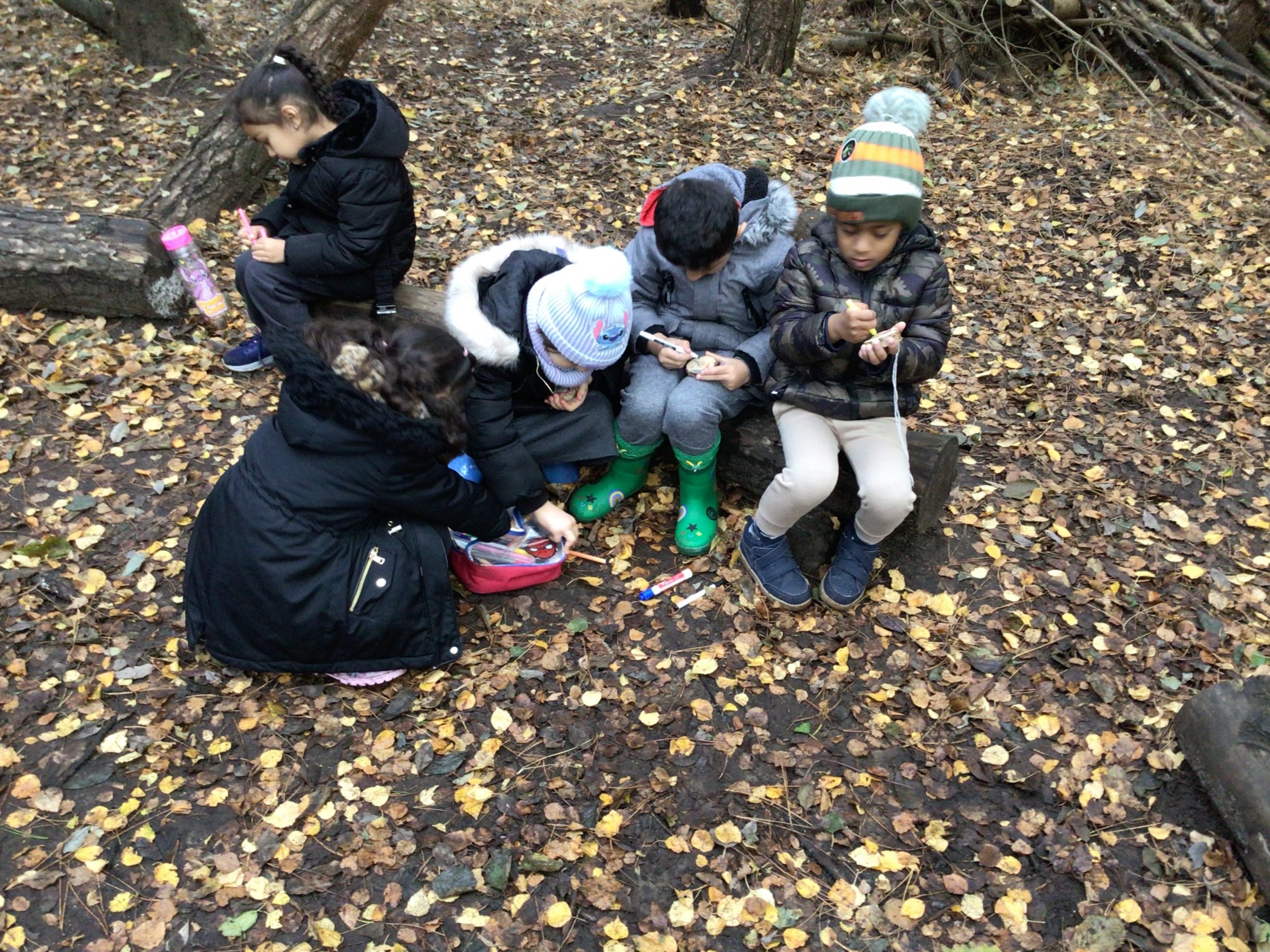 We had an amazing opportunity to visit Laurel’s Wood Forest School. We learnt how to make fire and made marshmallows on it, created flags using flowers and leaves, made medallions by sawing wood and drilling a hole for the string and created dens using sticks and leaves from the area.