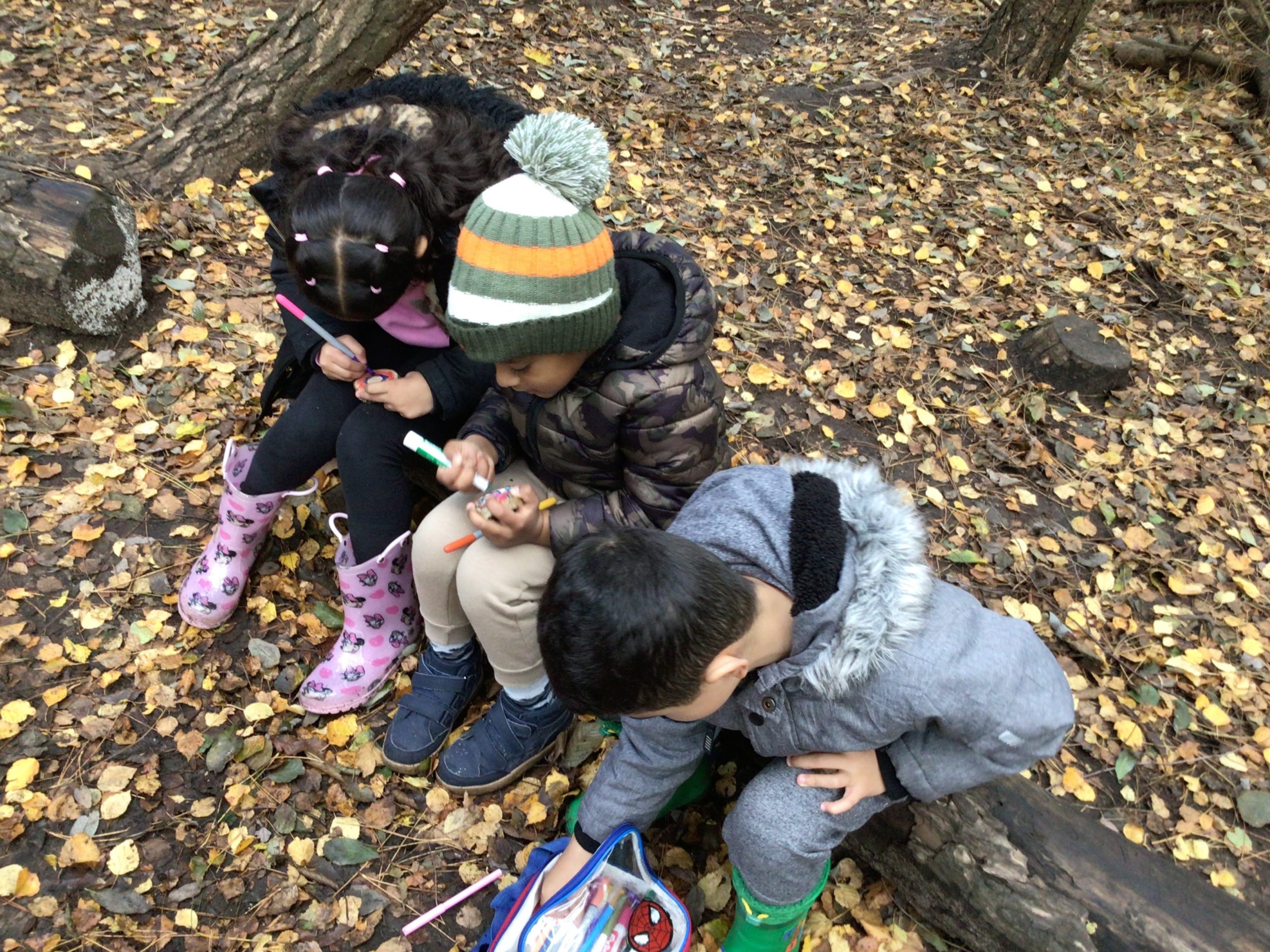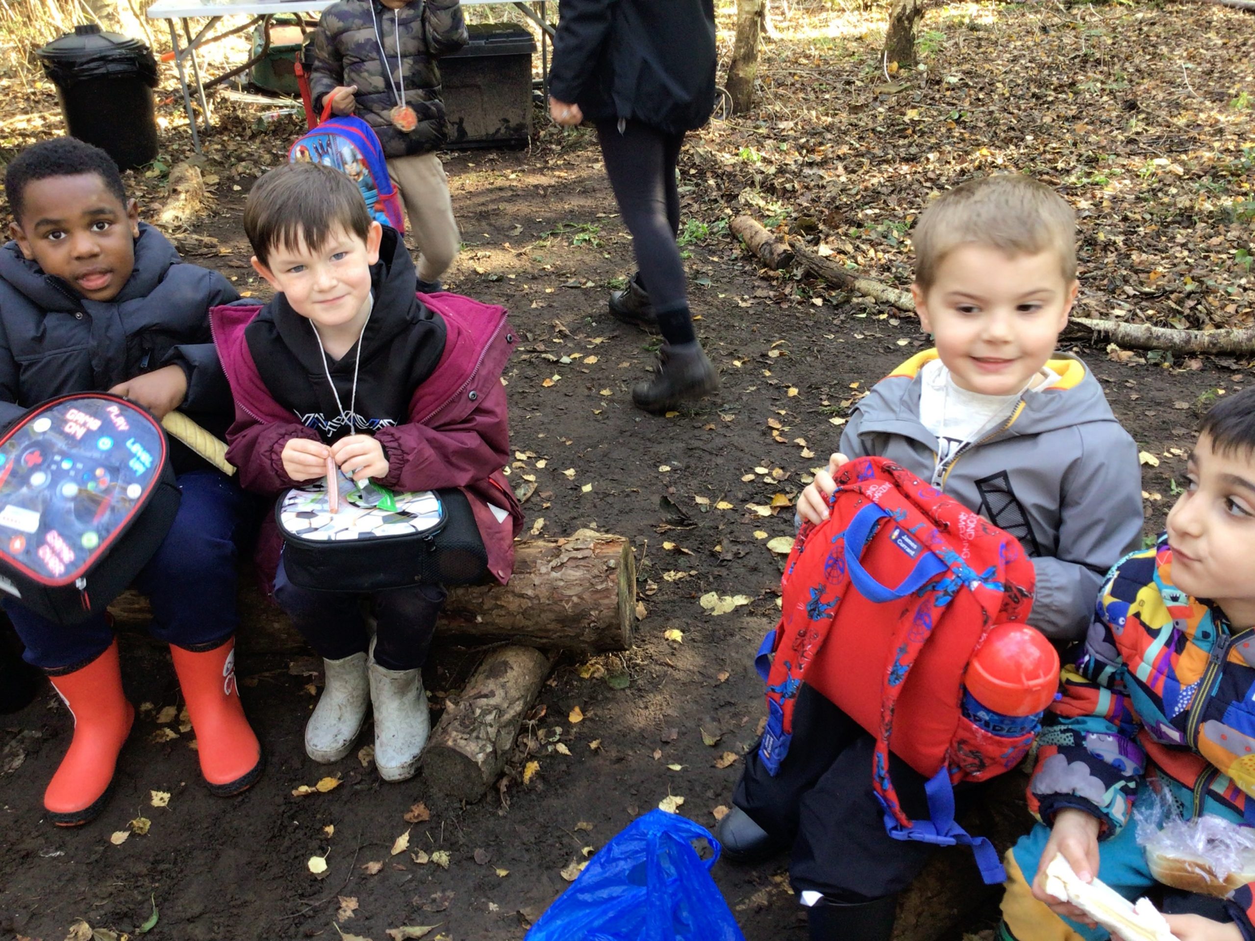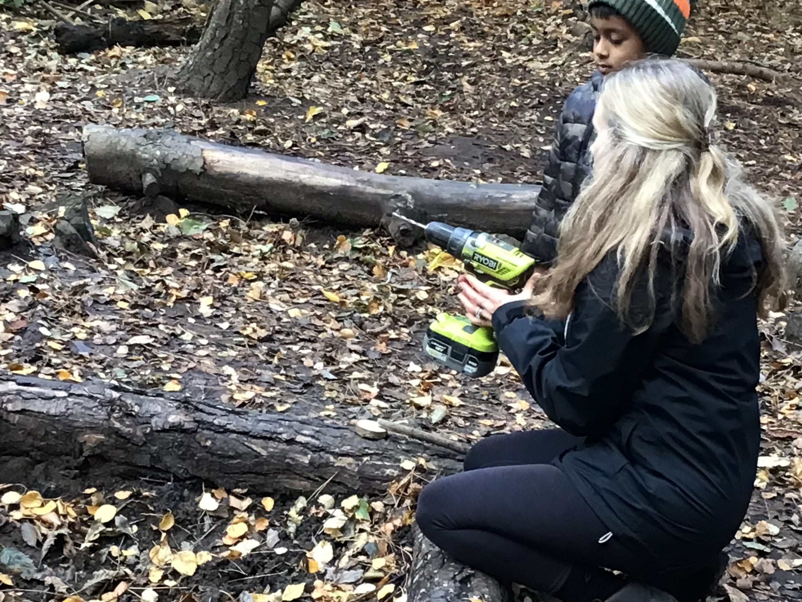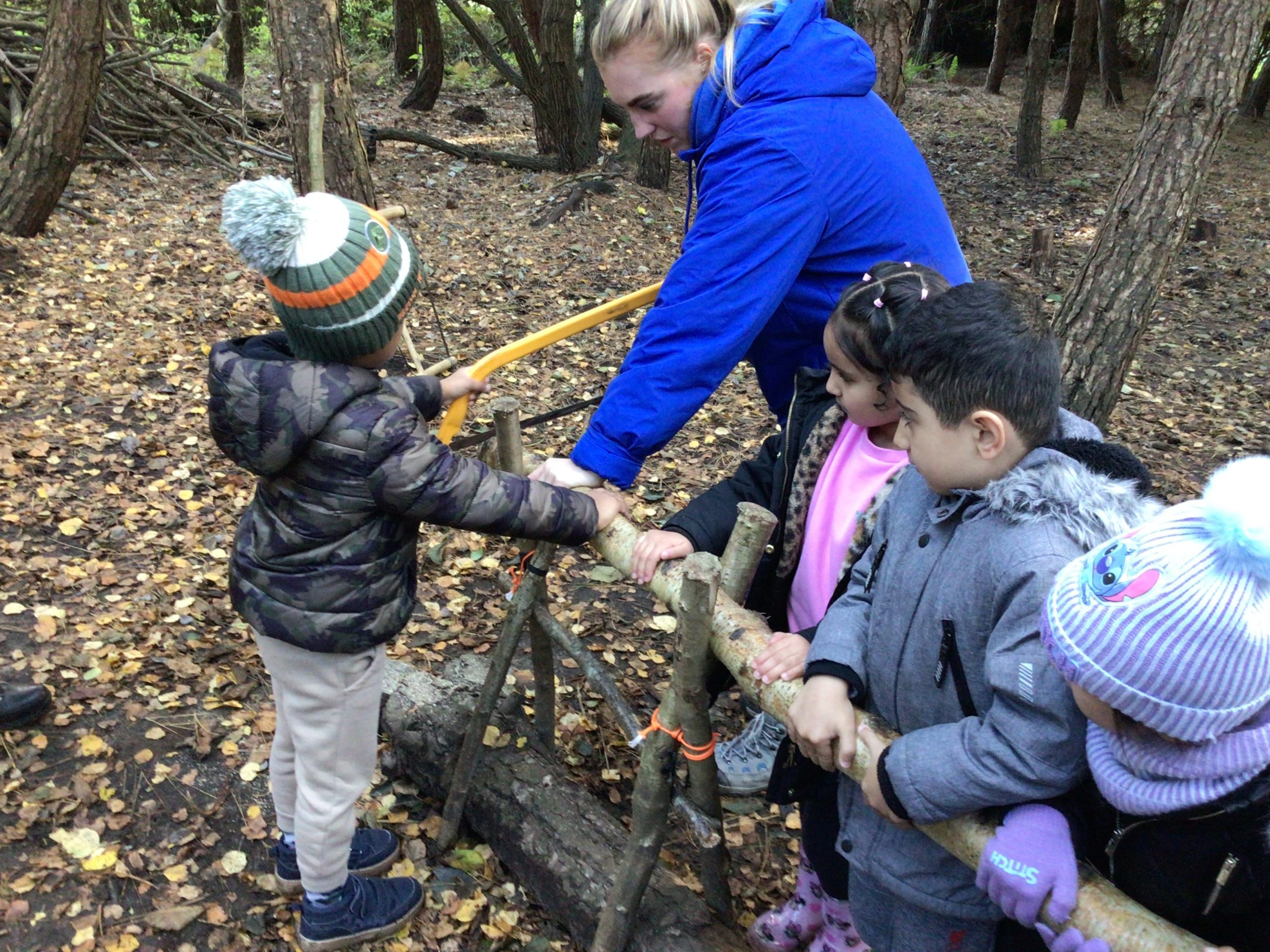 We had an amazing opportunity to visit Laurel’s Wood Forest School. We learnt how to make fire and made marshmallows on it, created flags using flowers and leaves, made medallions by sawing wood and drilling a hole for the string and created dens using sticks and leaves from the area.