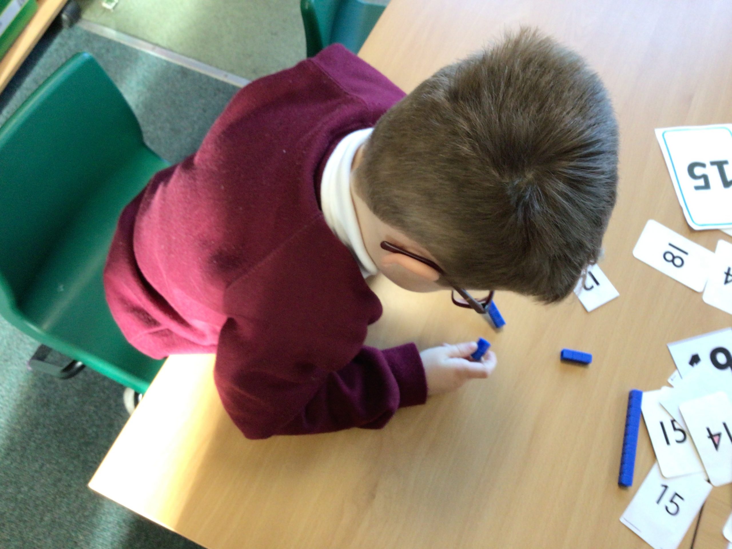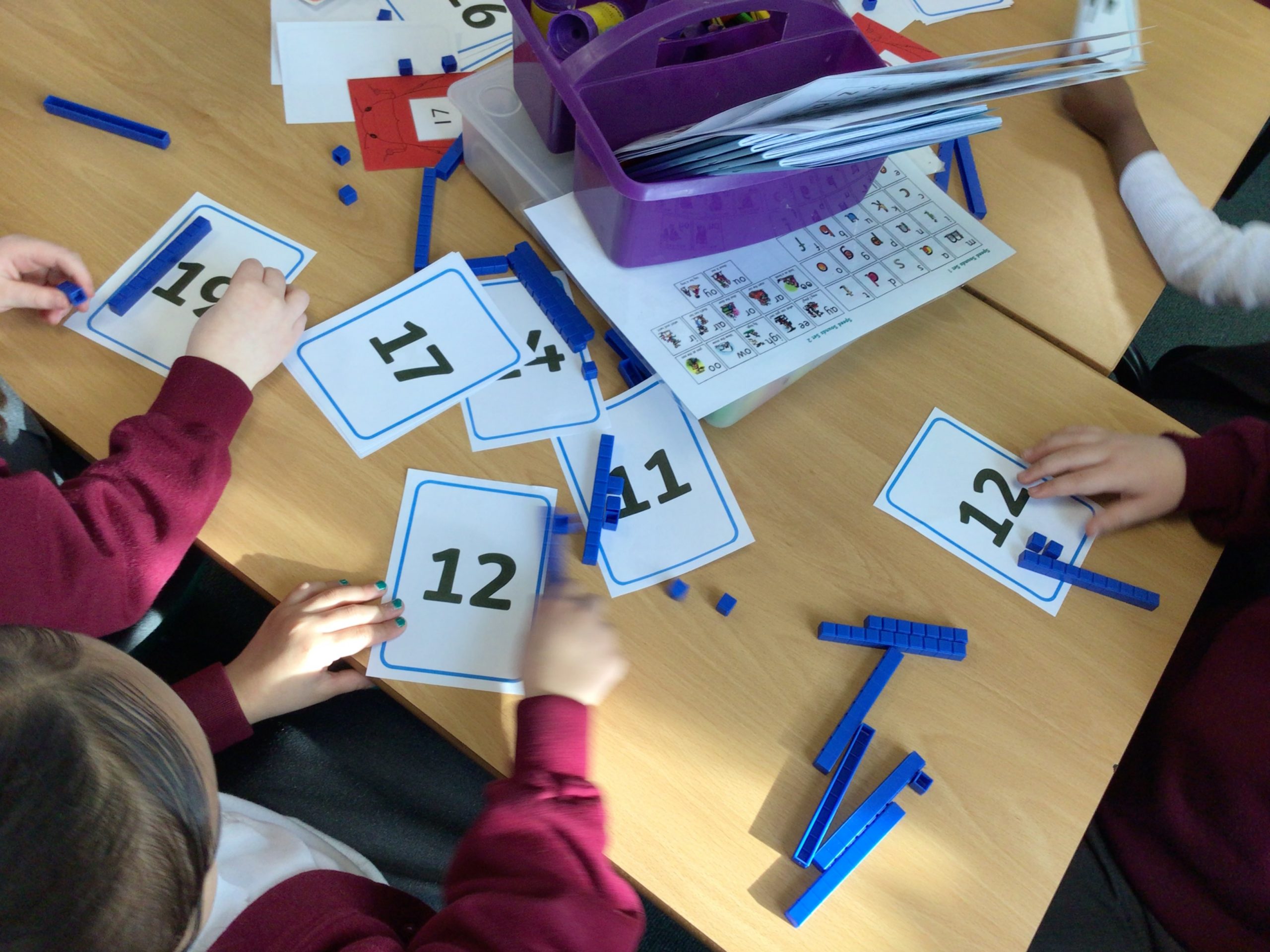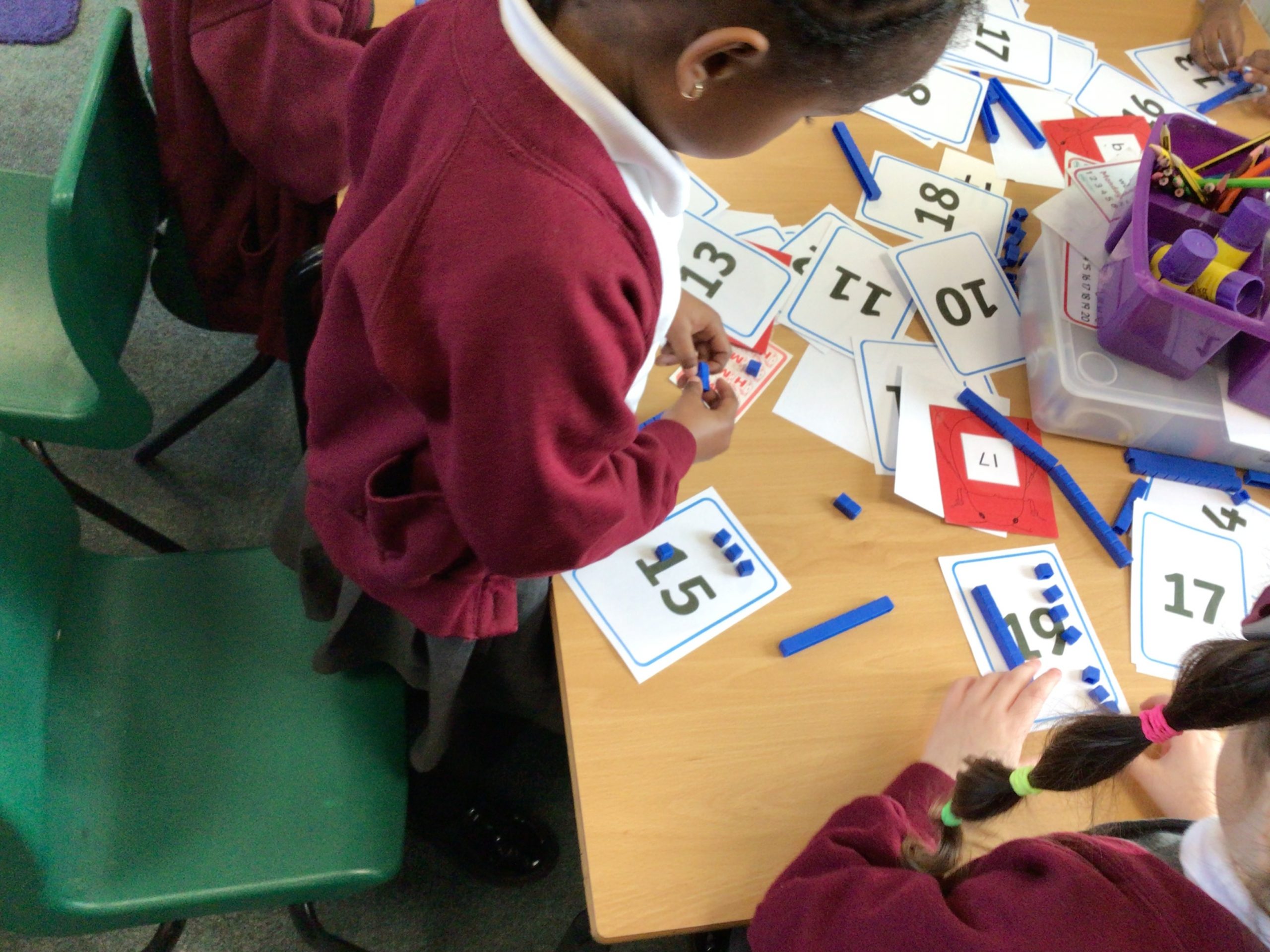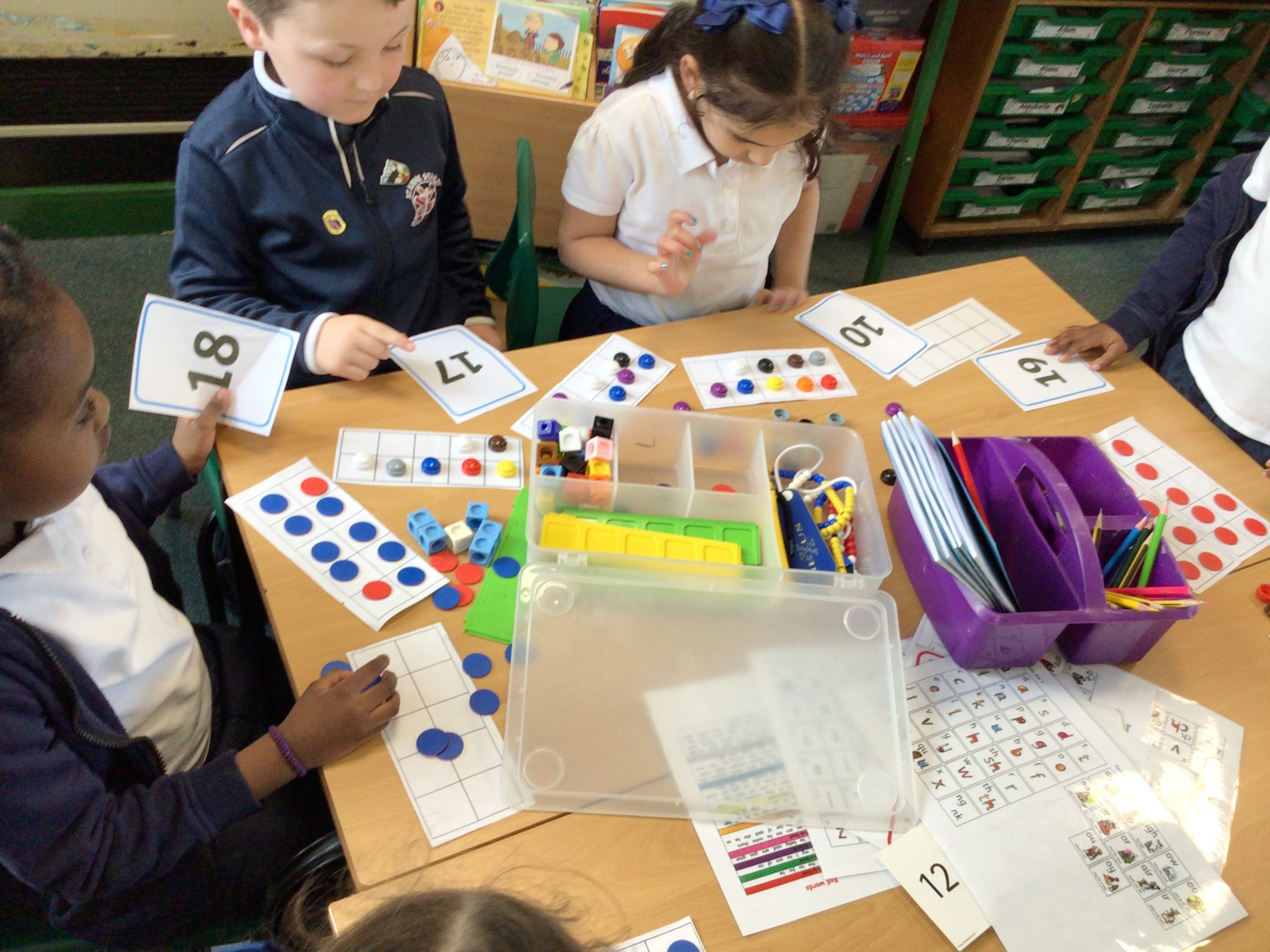 We are learning about Place Value within 20. We have been finding out about teen numbers and have used ten frames to show that one full ten plus some of another ten shows us teen numbers.