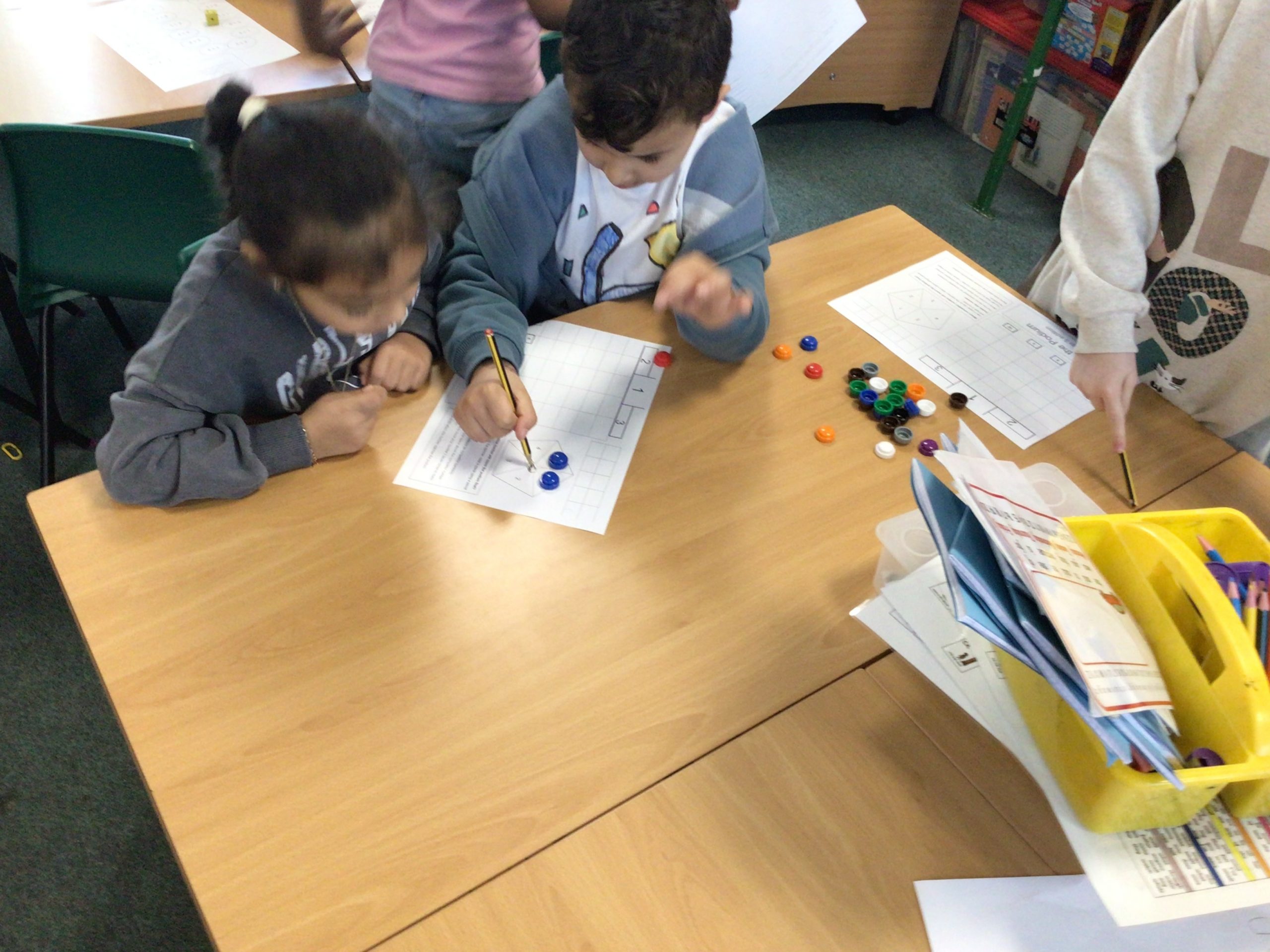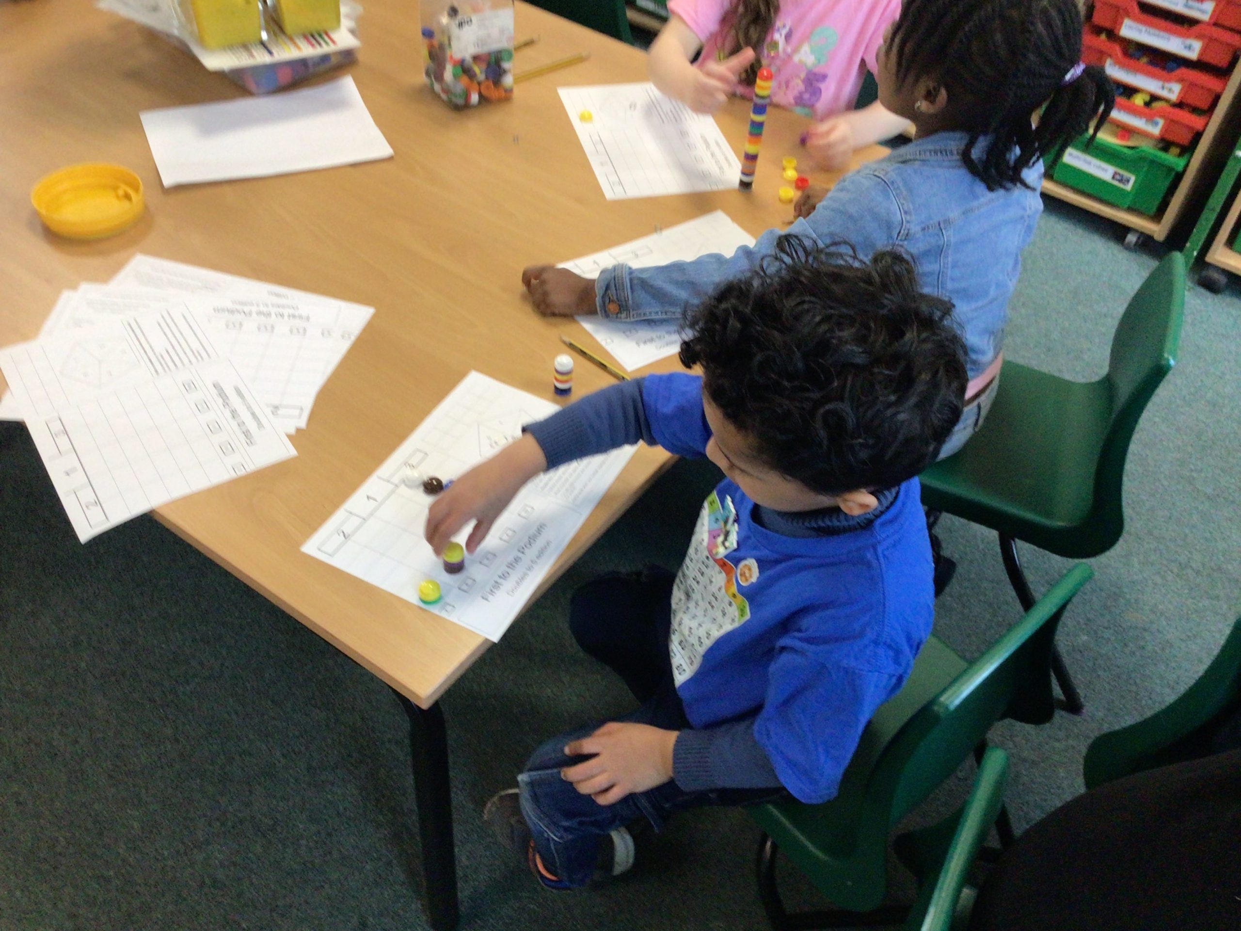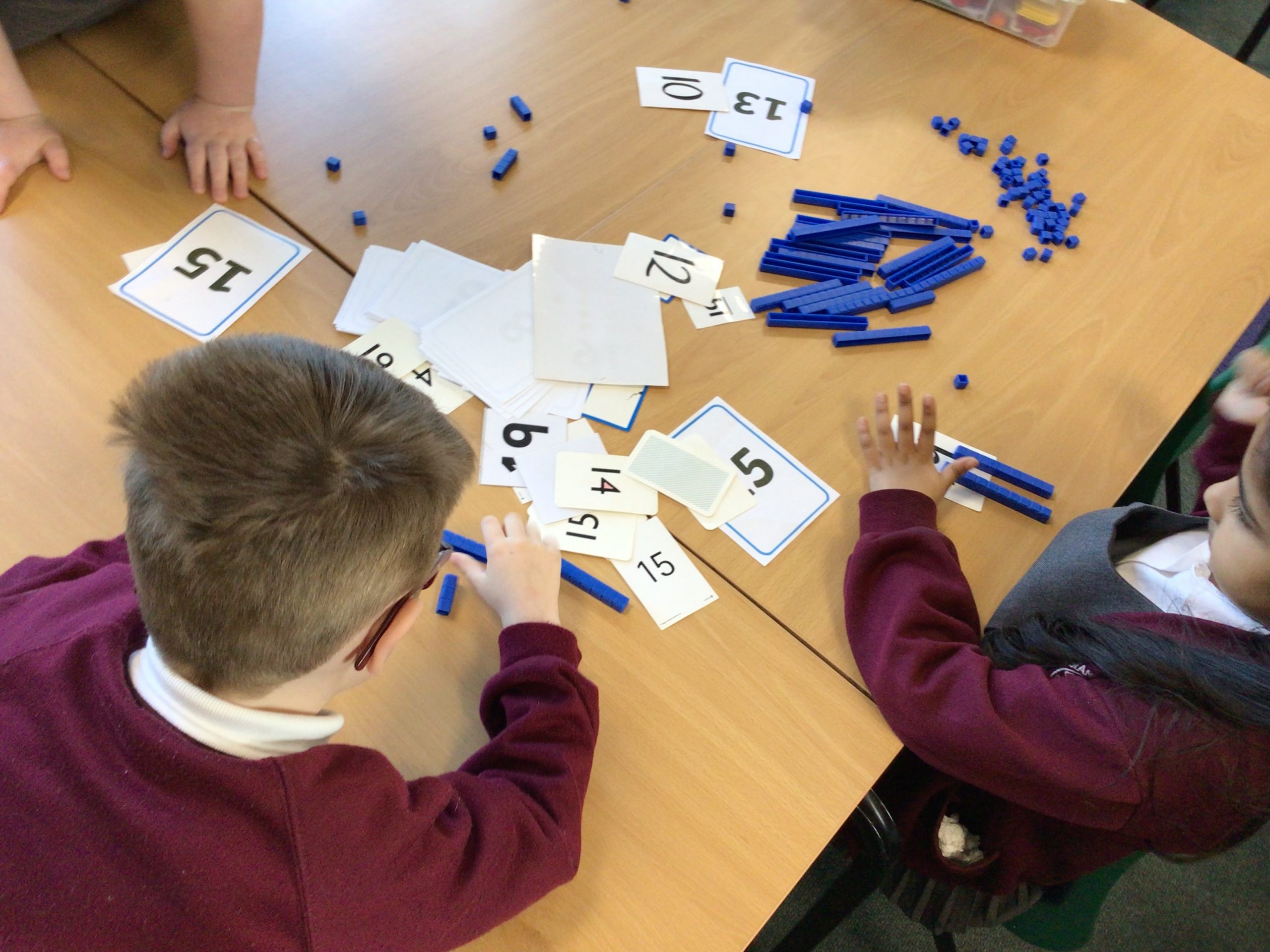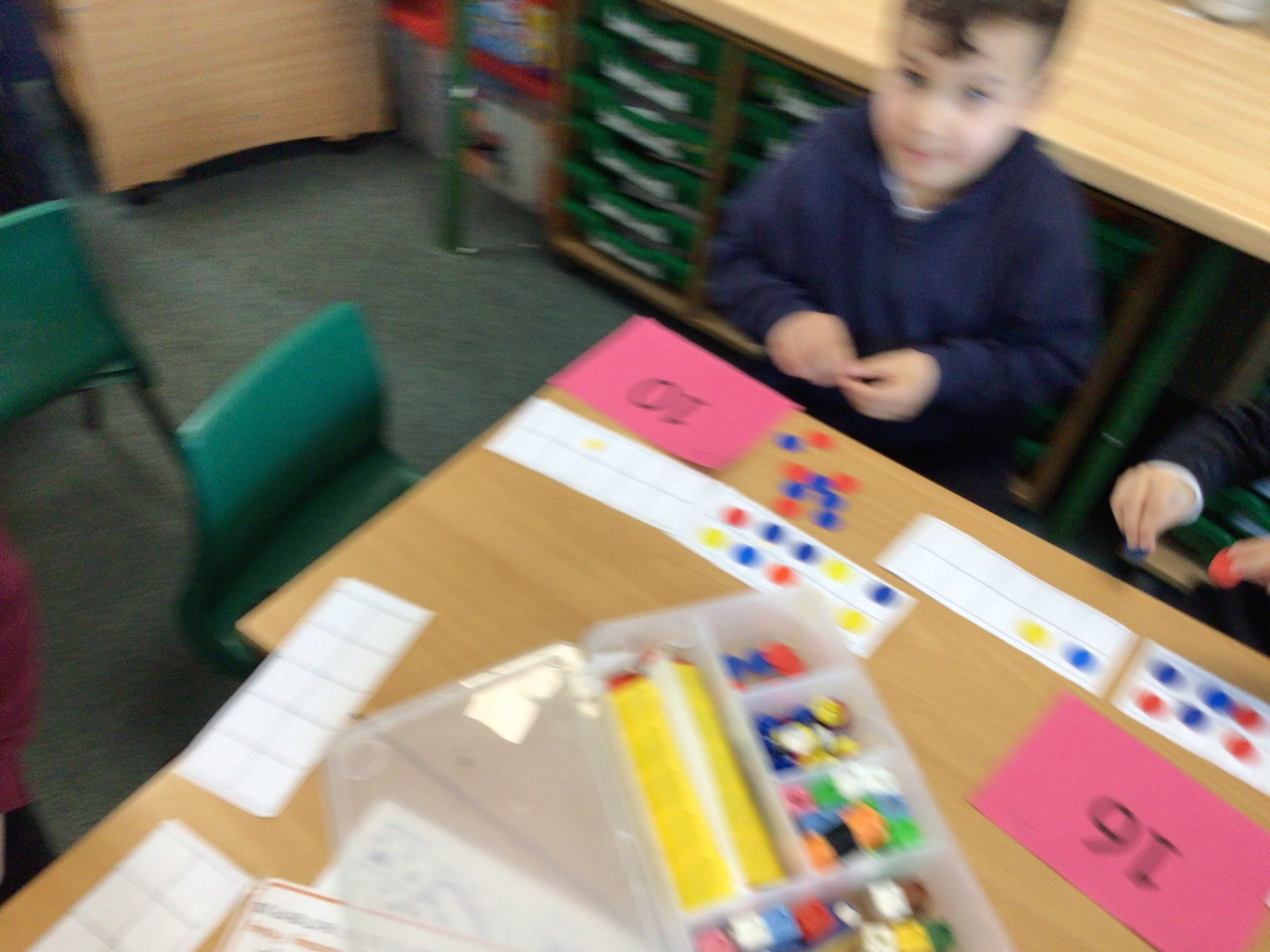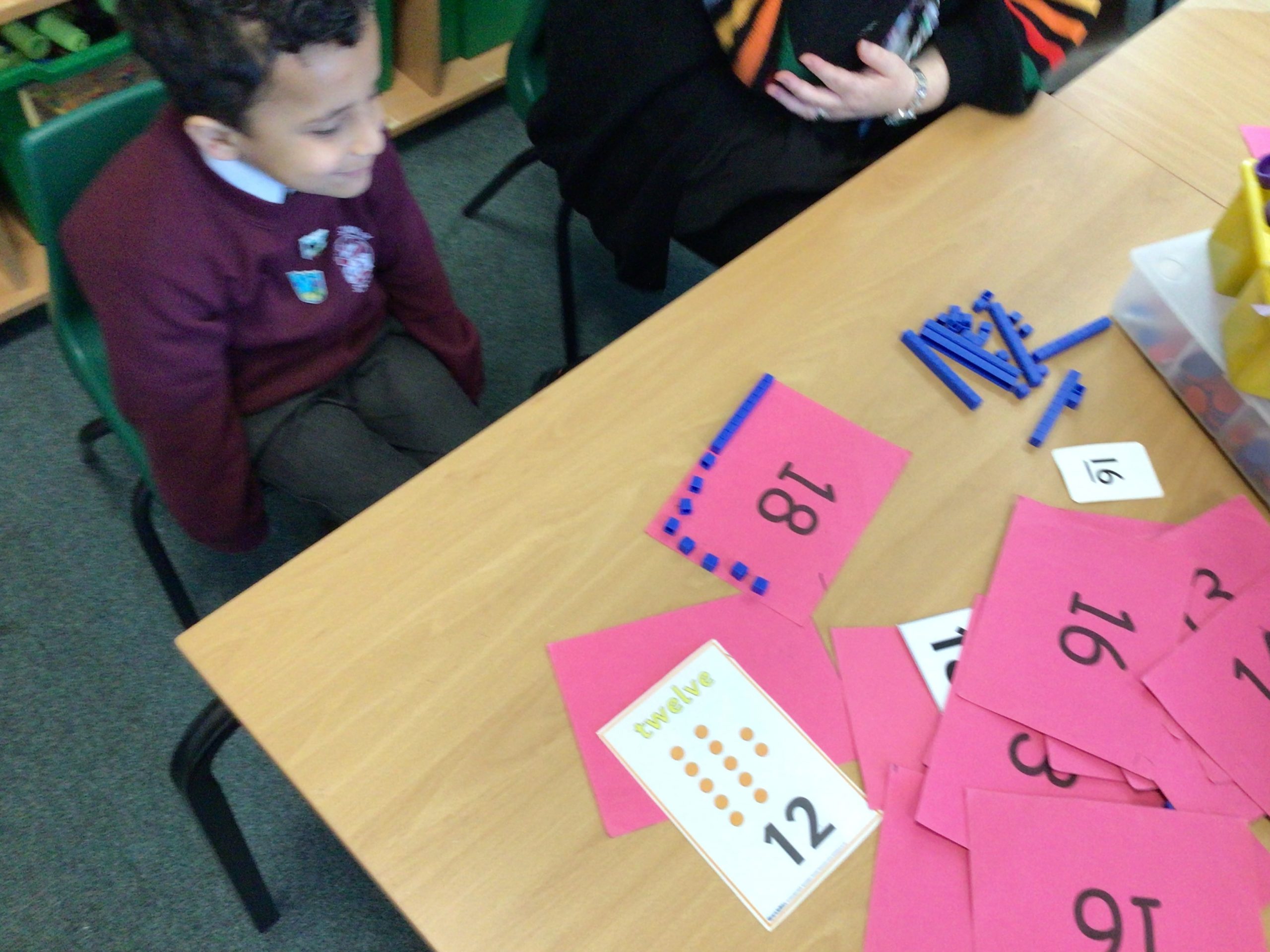We are learning about Place Value within 20. We have been finding out about teen numbers and have used ten frames to show that one full ten plus some of another ten shows us teen numbers.