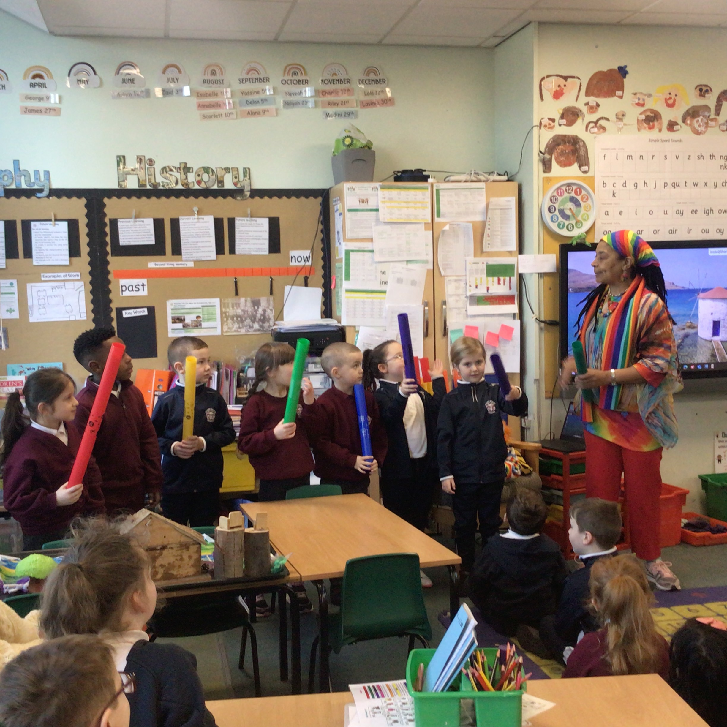 We had a visit from Levi Trefari on National Poetry Day. We joined in with his poems and had a go at writing our own poems.