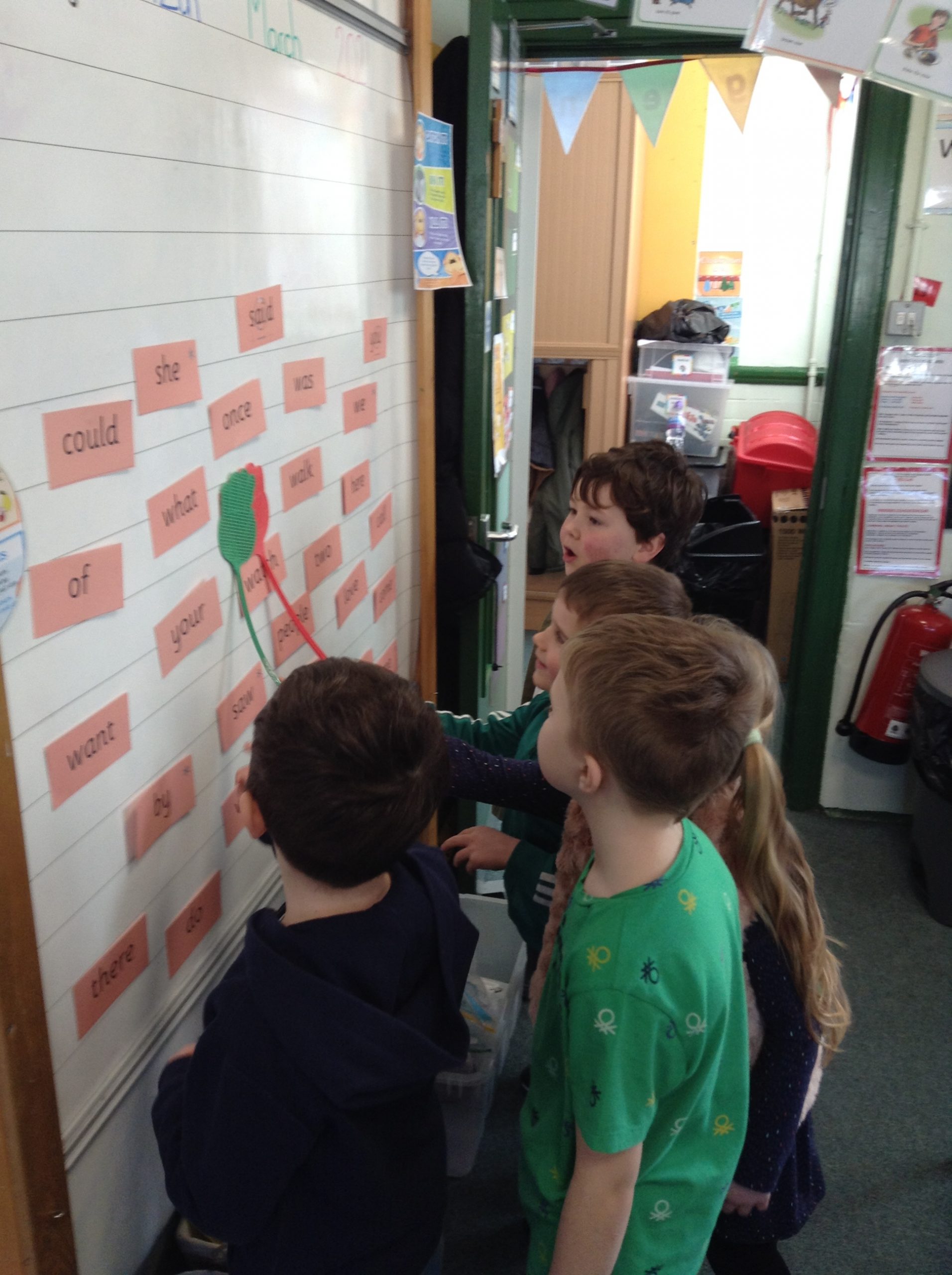 After ditty books, the next stage is storybooks. These books are closely matched to their developing phonic knowledge. The storybooks consist of green words linked to the sounds that they have been learning, red words and challenge words to extend the children’s vocabulary. After children have practiced these words individually they are prepared to see them in context in the story.