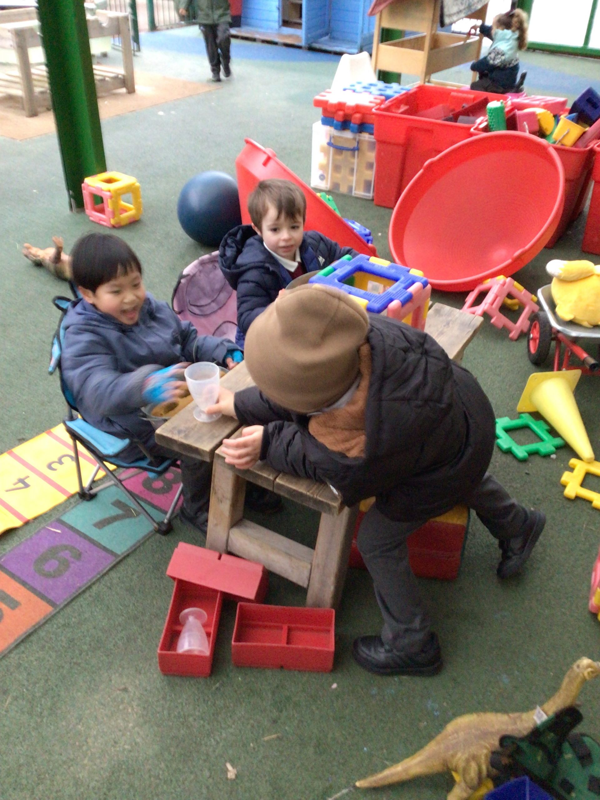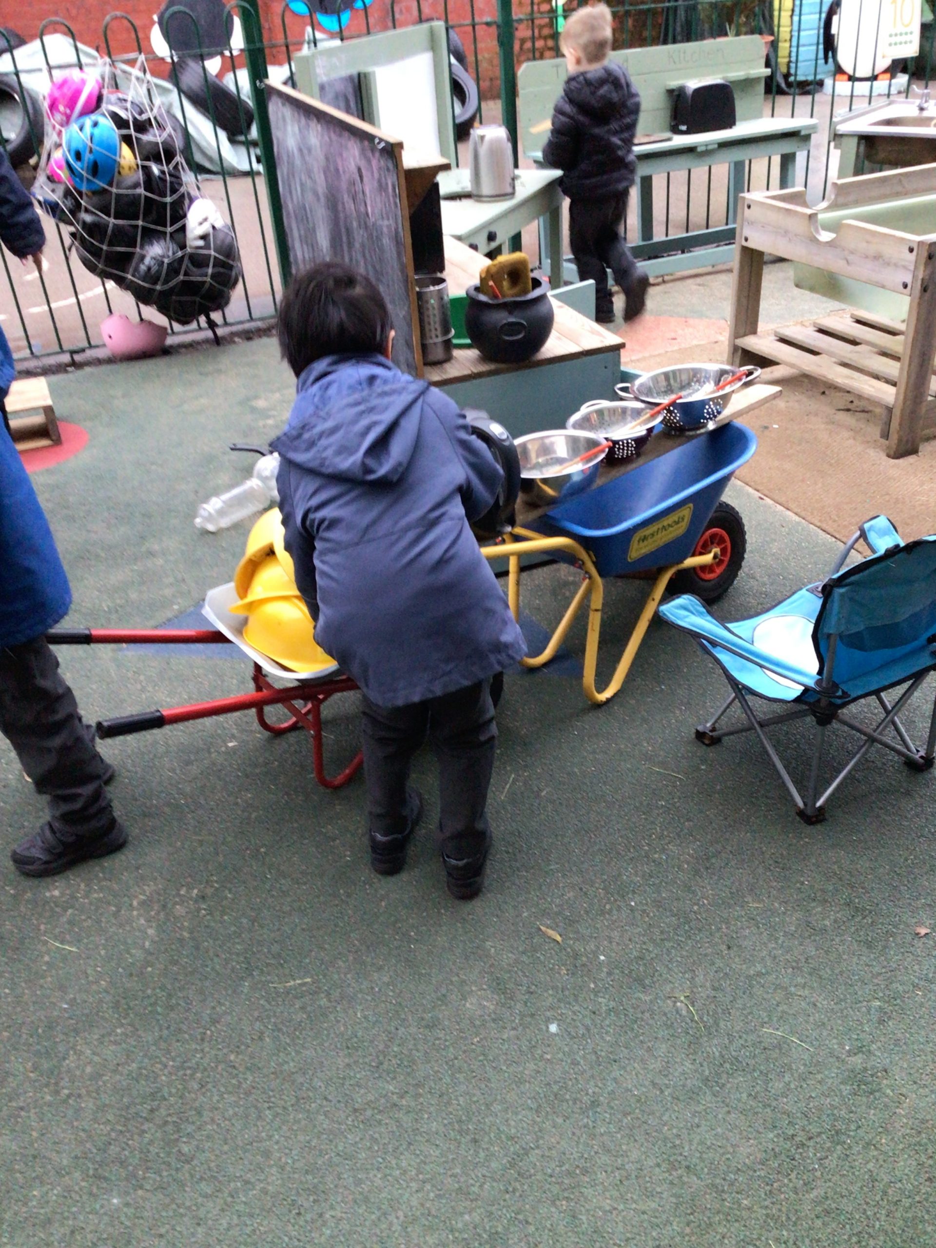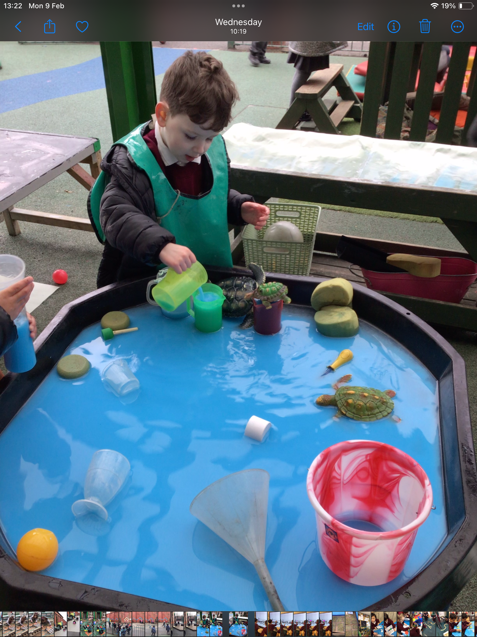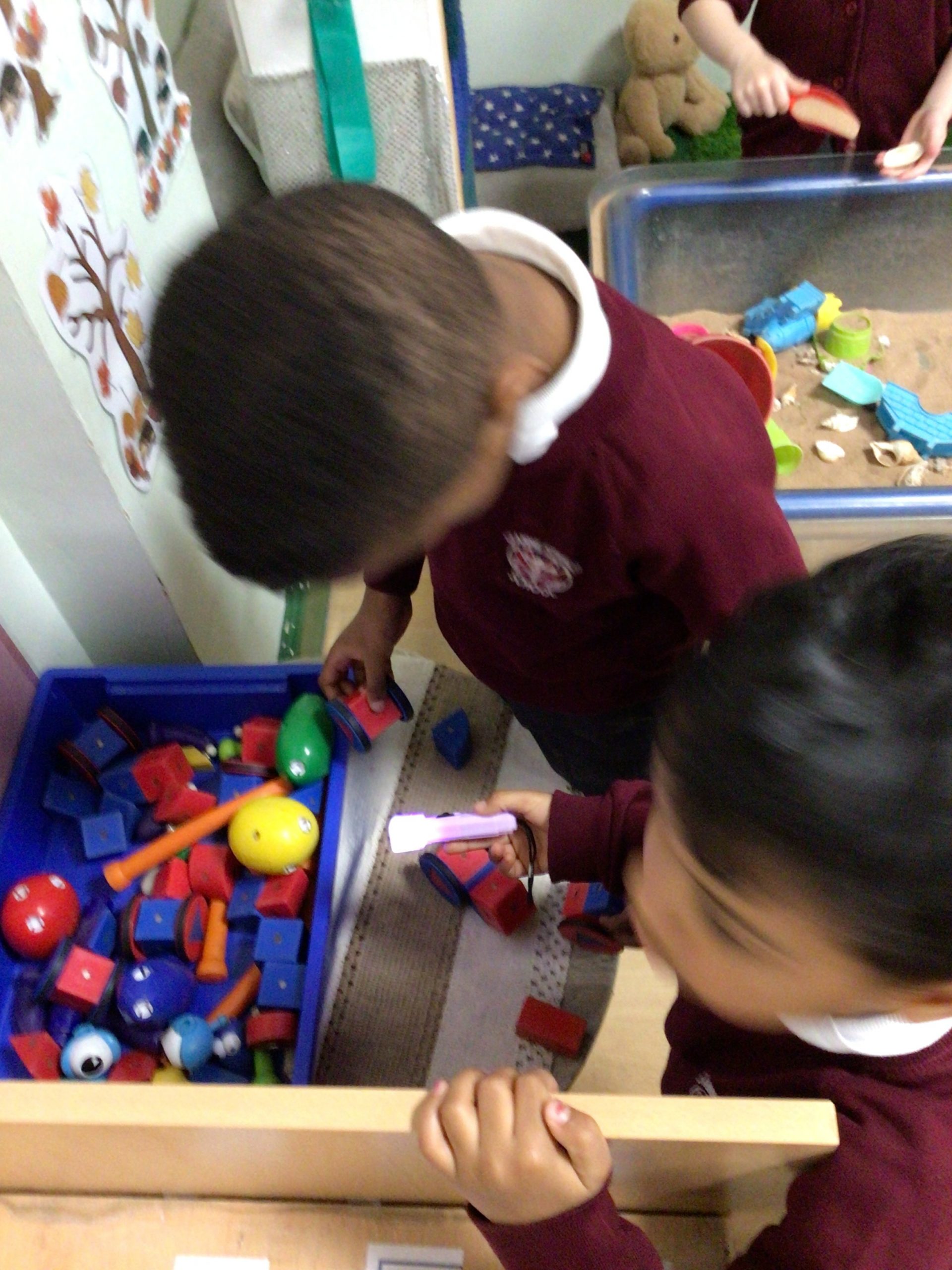 Begin to develop complex stories using small world equipment like animal sets, dolls and dolls houses, etc.