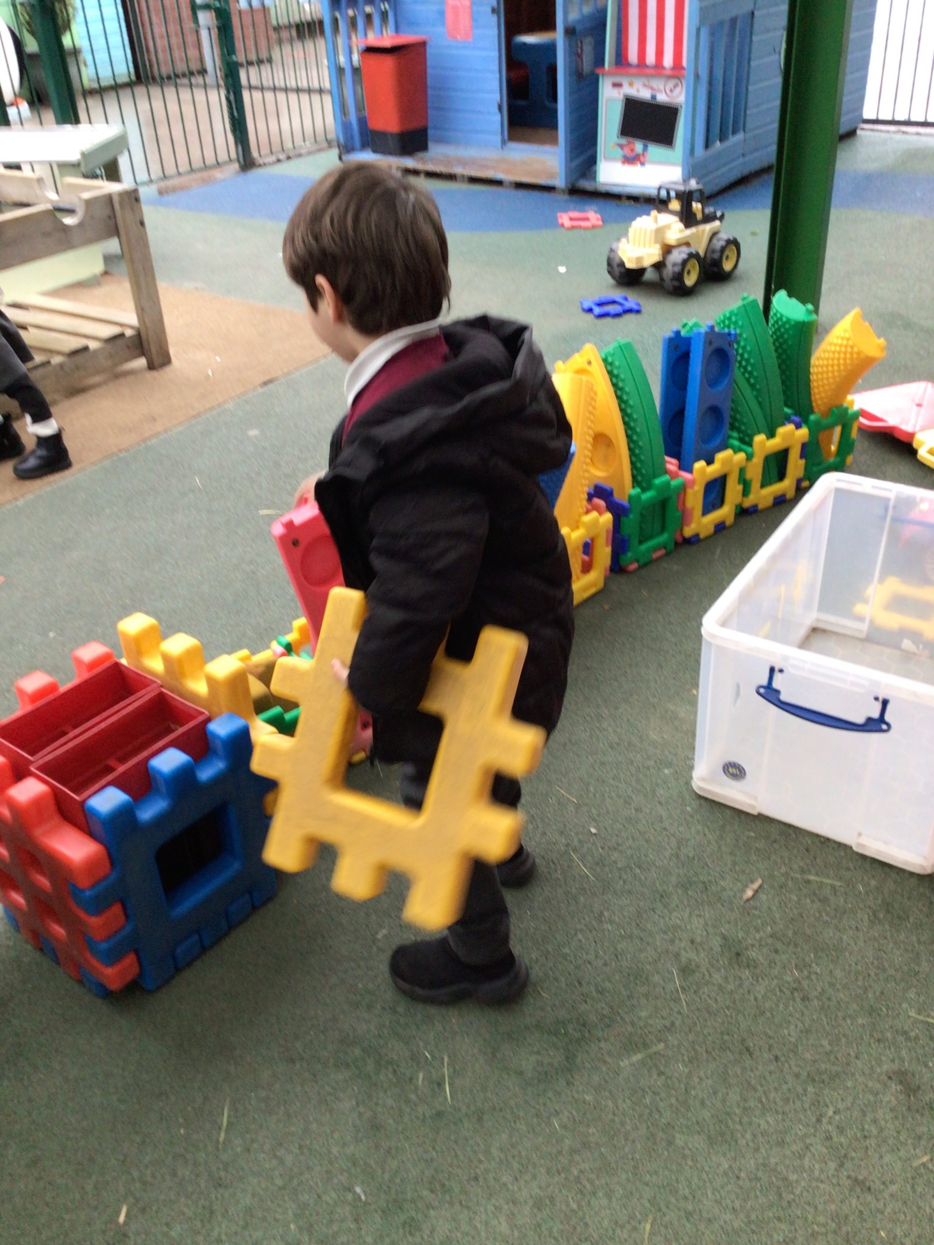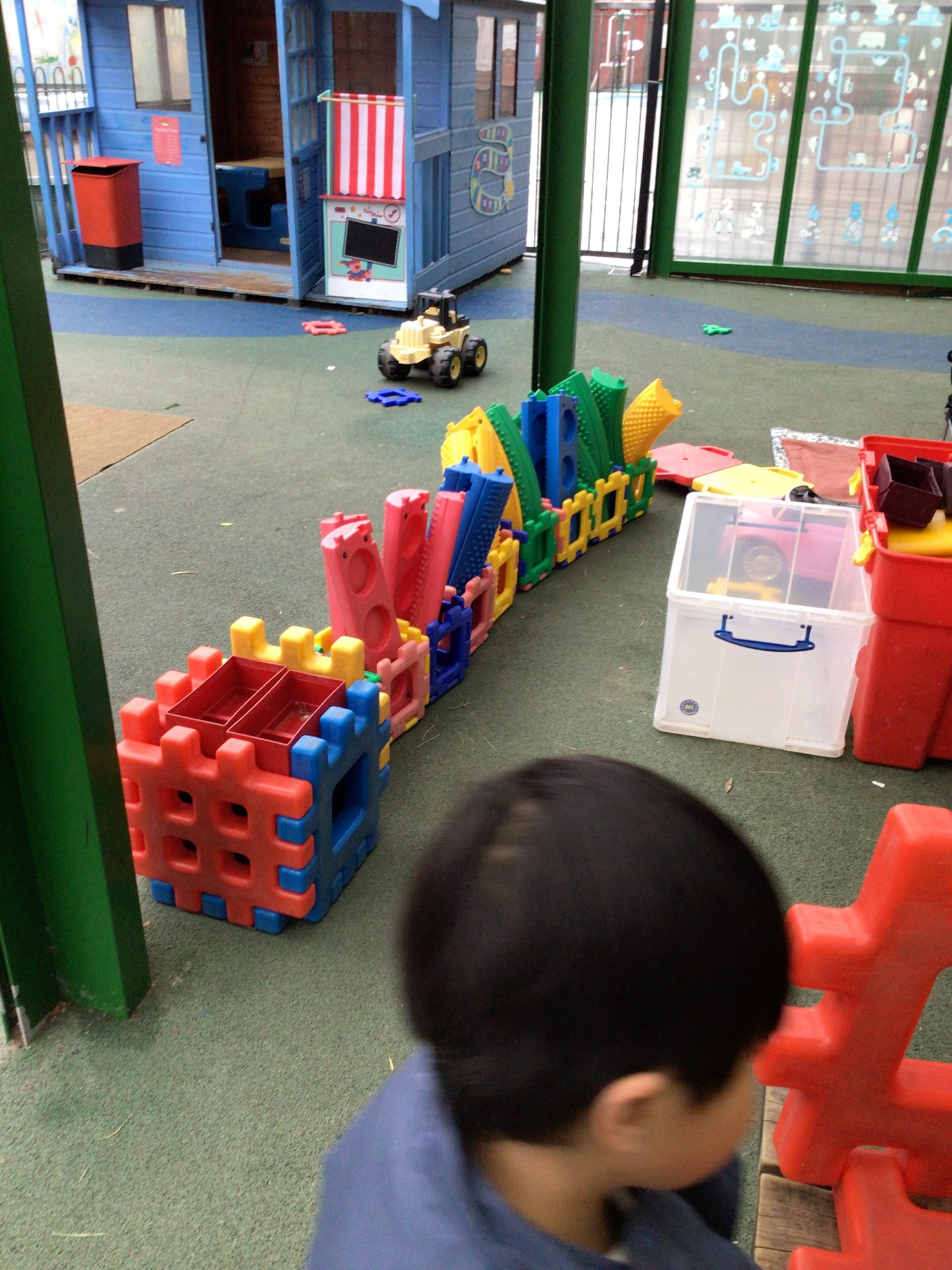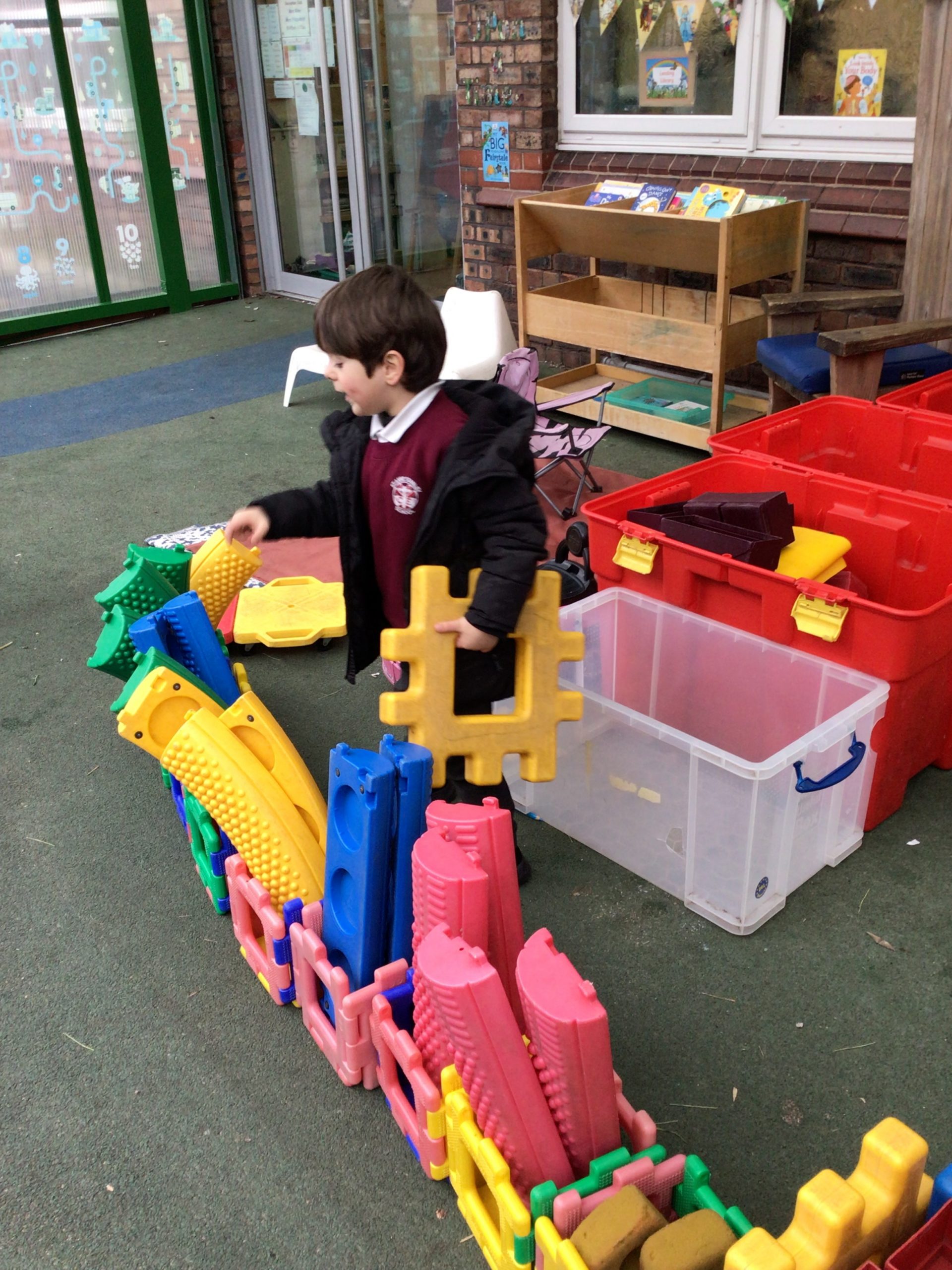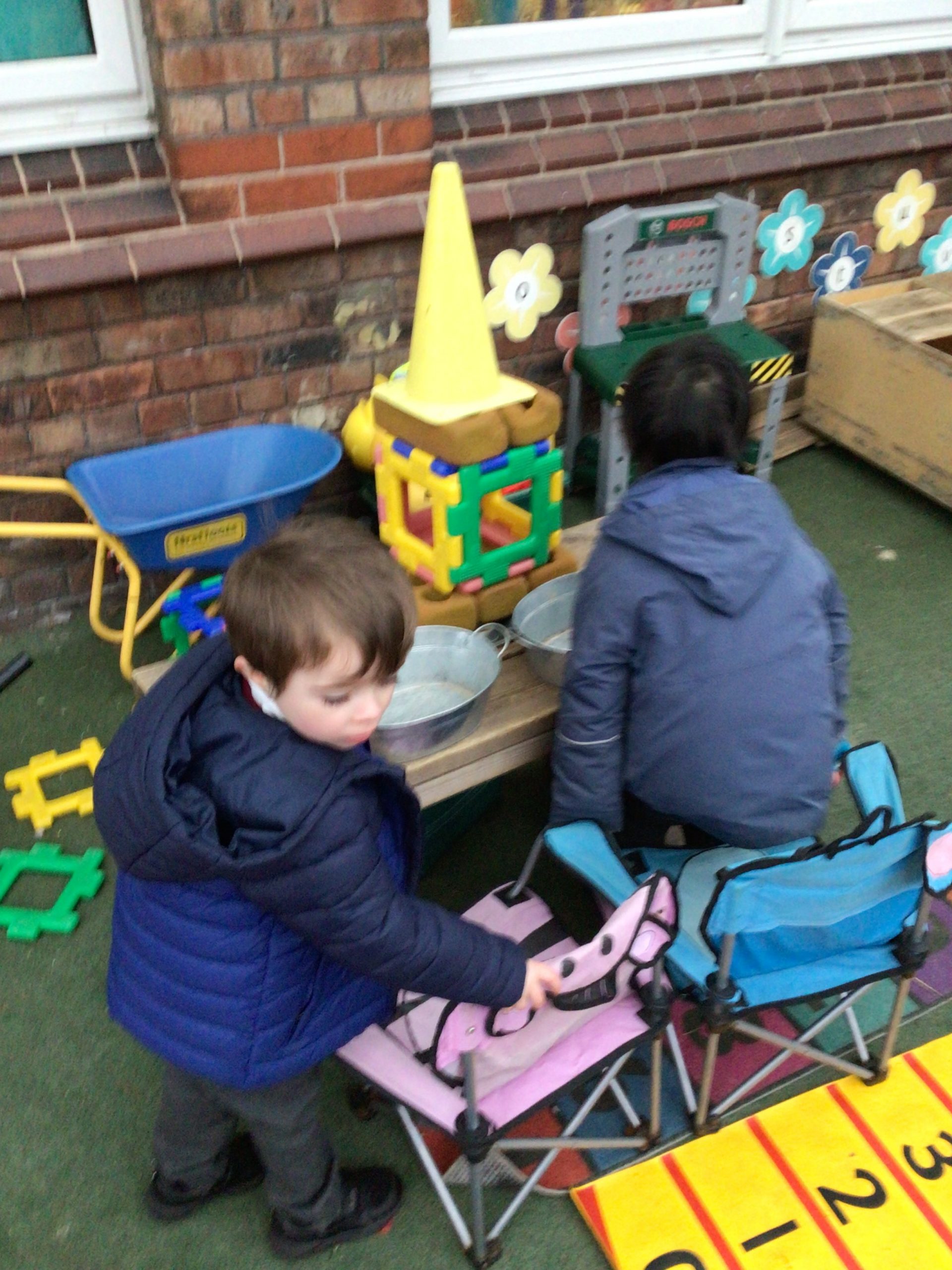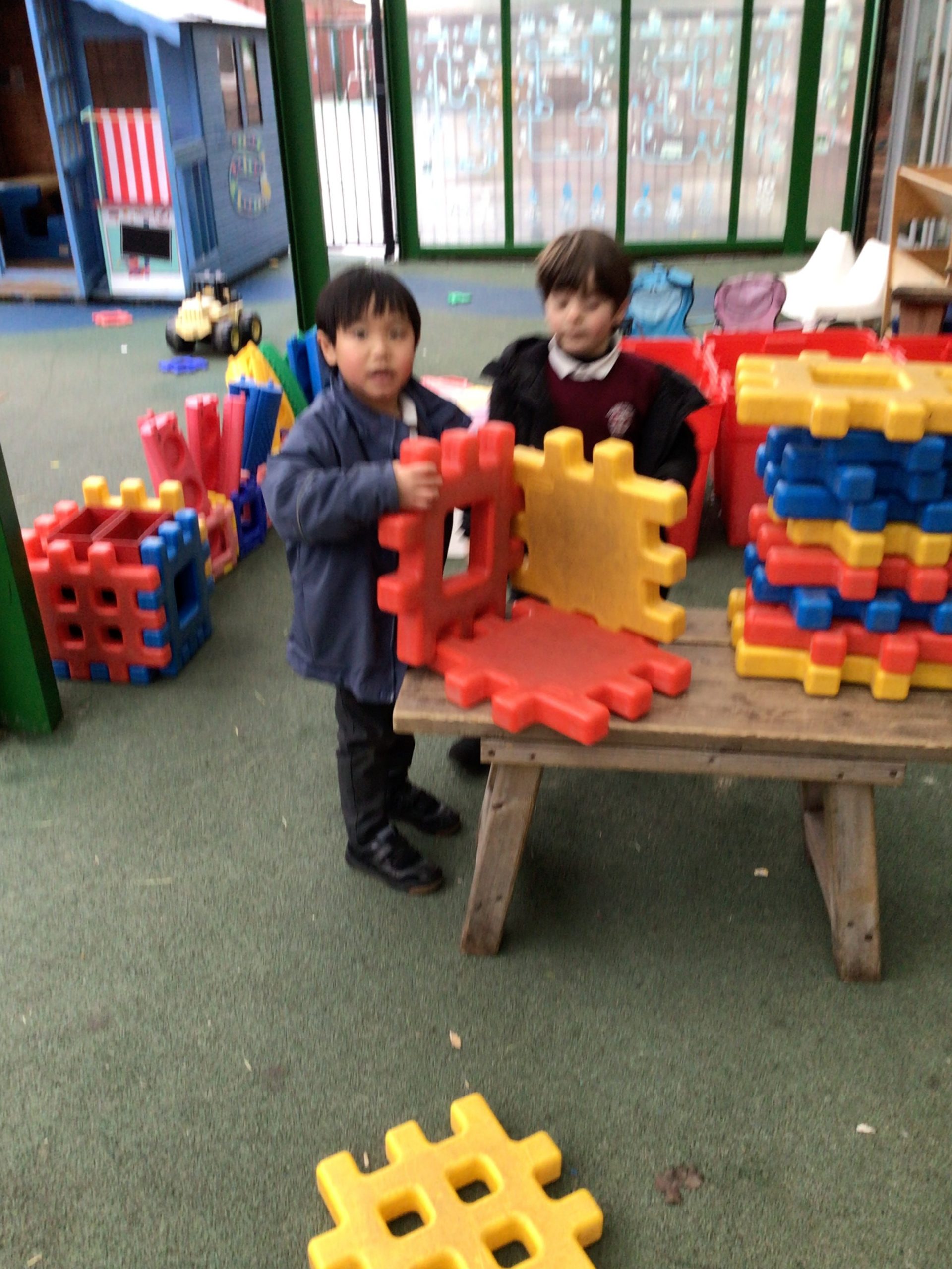 Make imaginative and complex ‘small worlds’ with blocks and construction kits, such as a city with different buildings and a park.