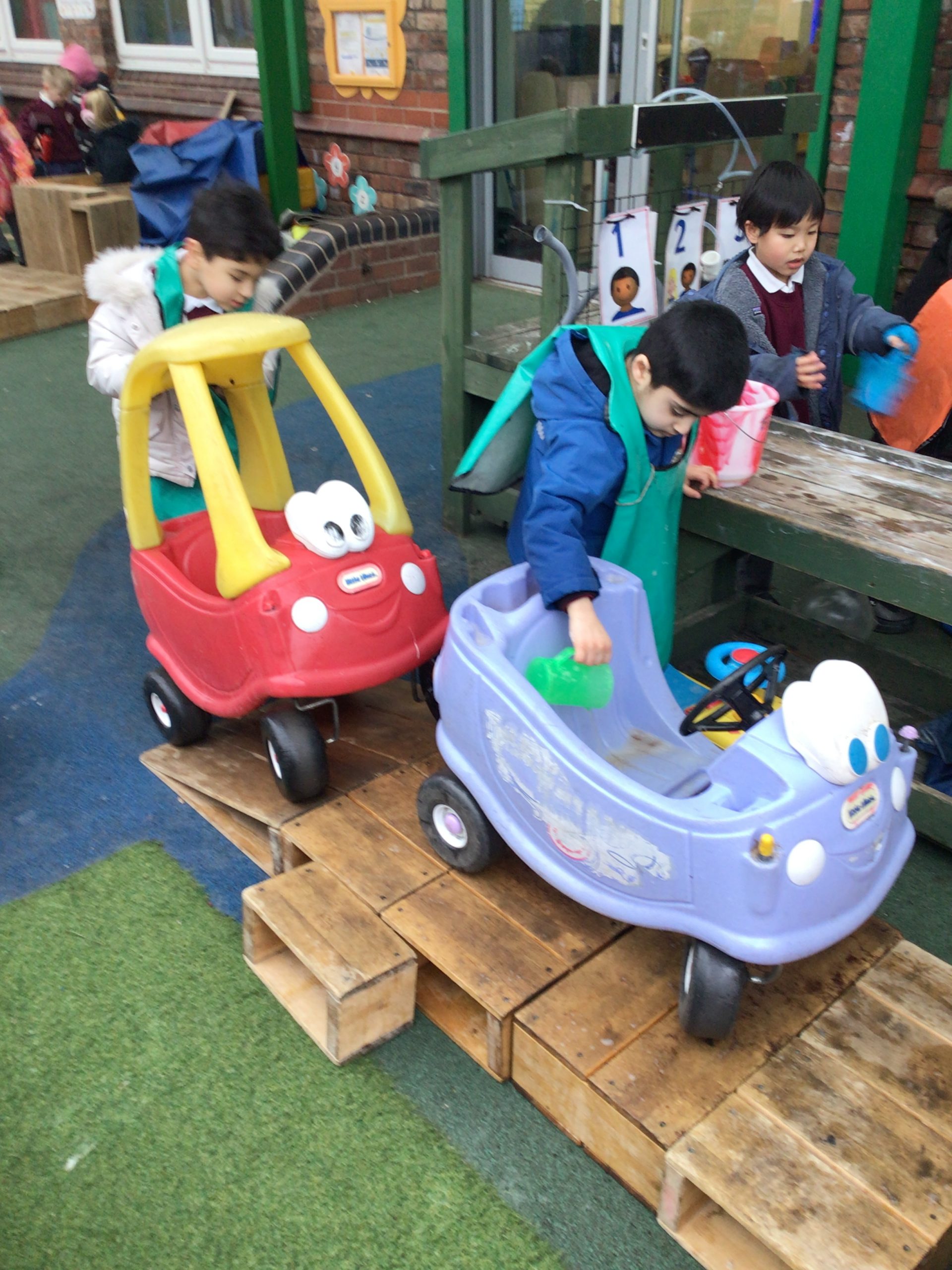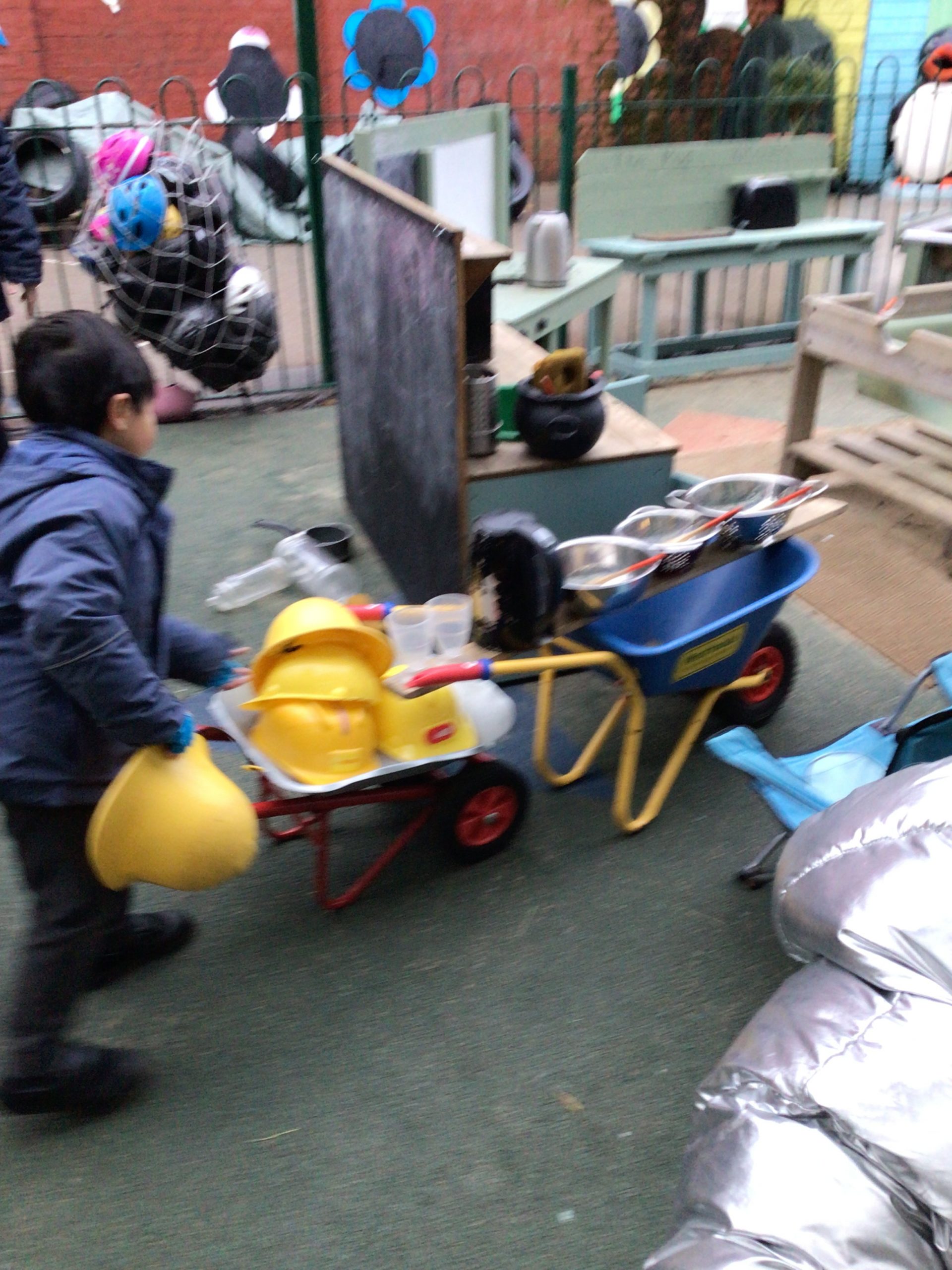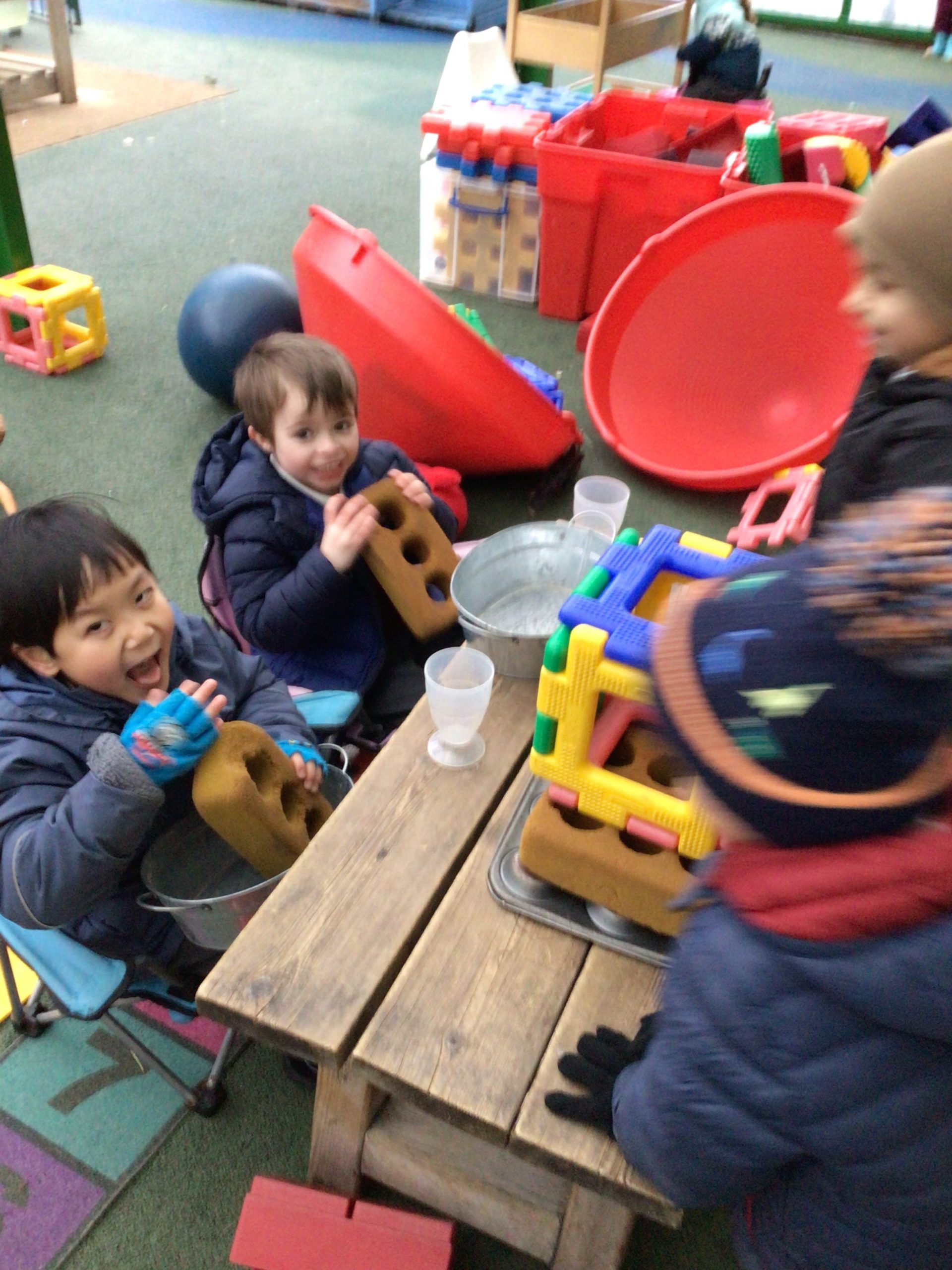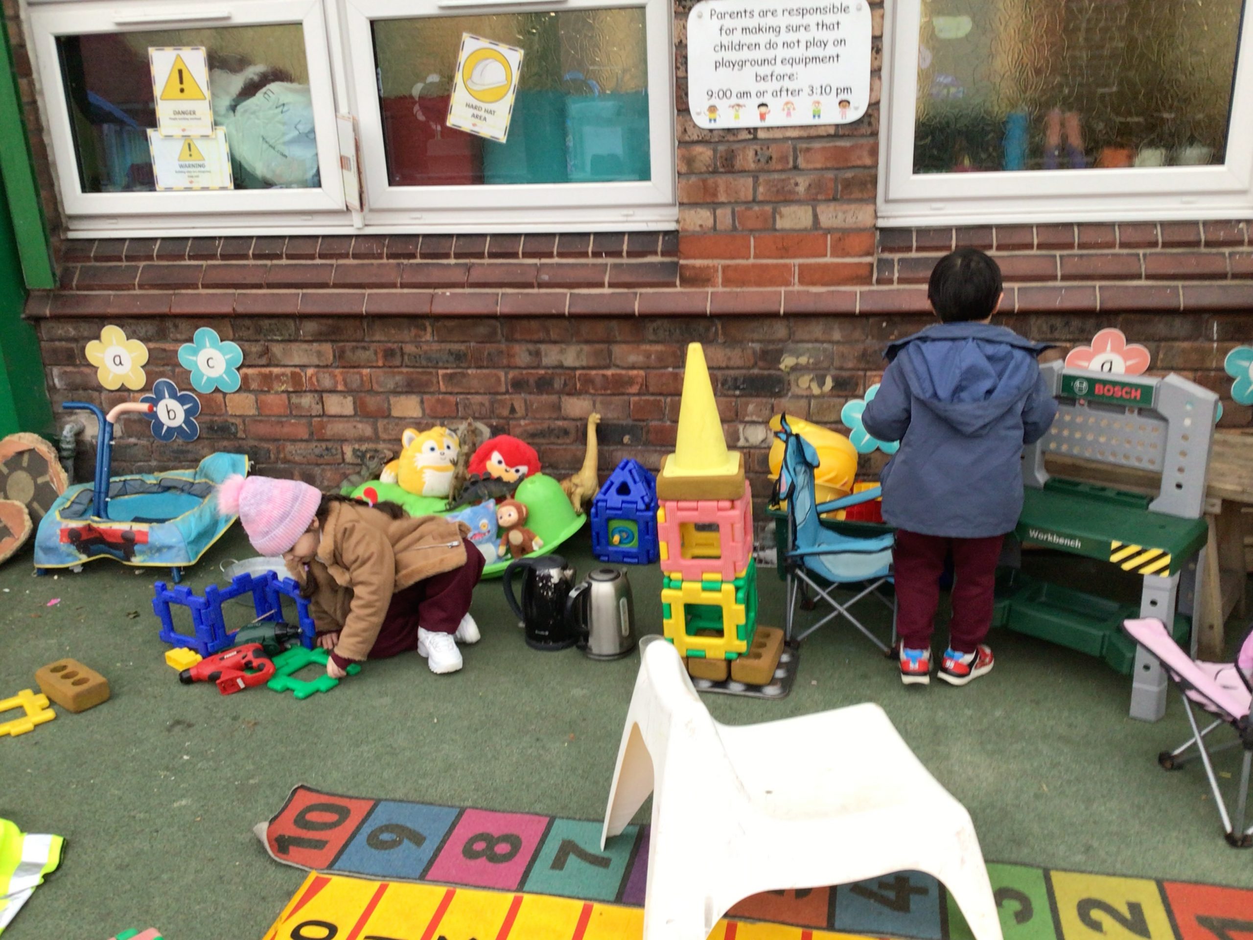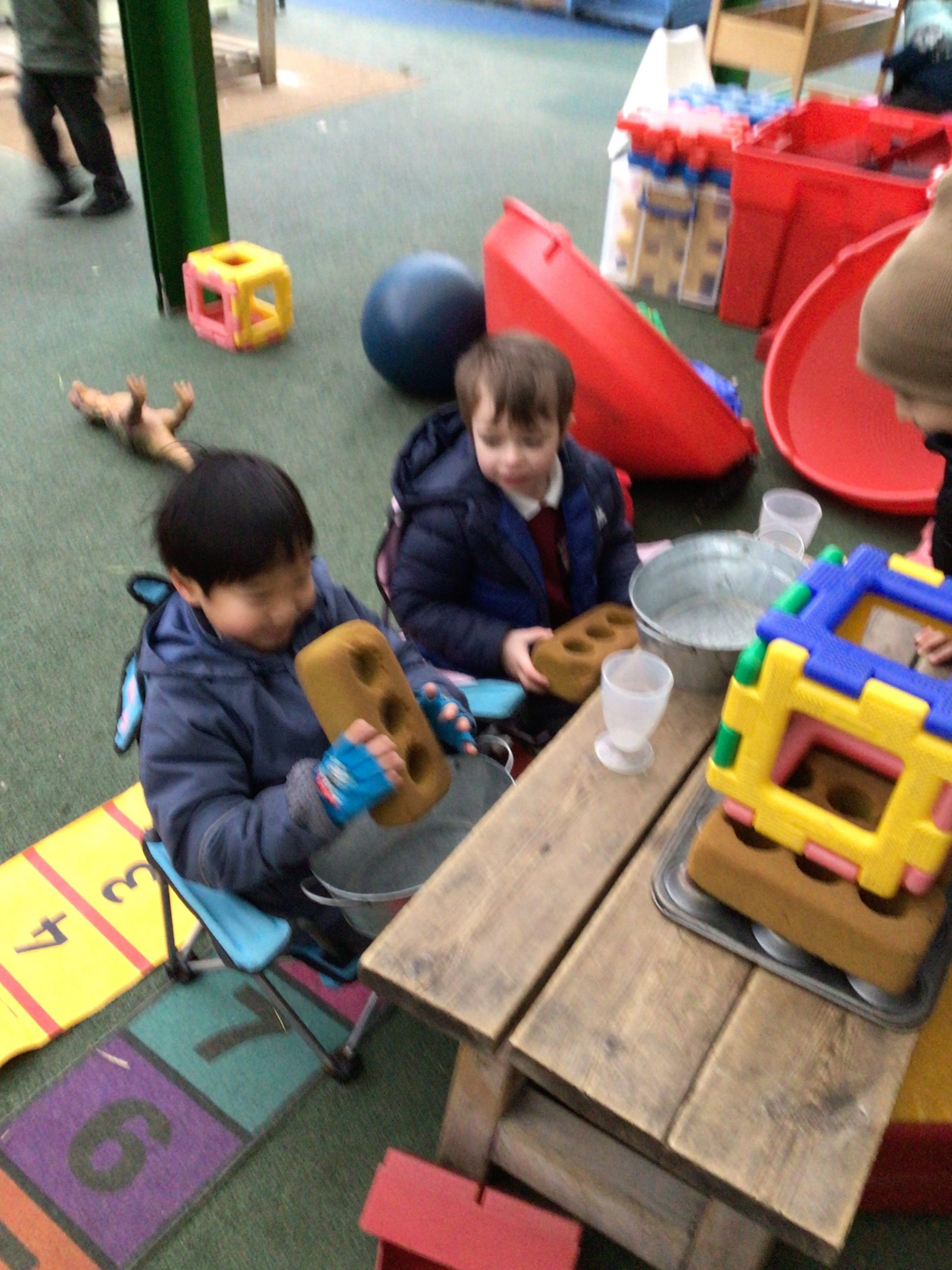 Make imaginative and complex ‘small worlds’ with blocks and construction kits, such as a city with different buildings and a park.