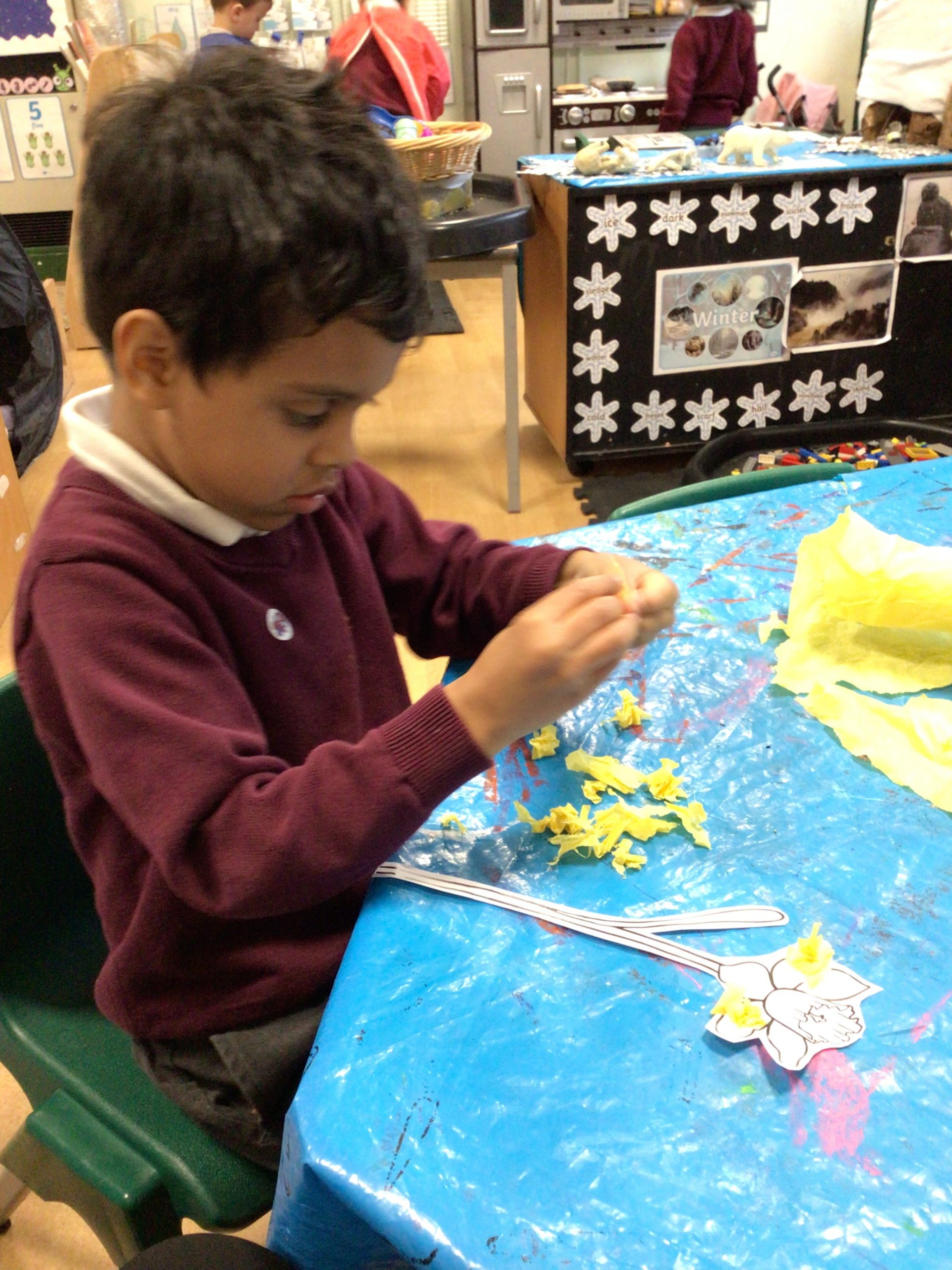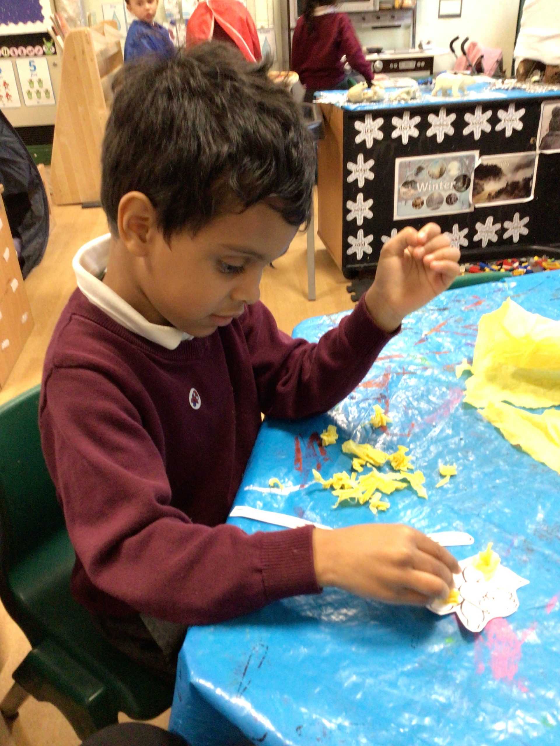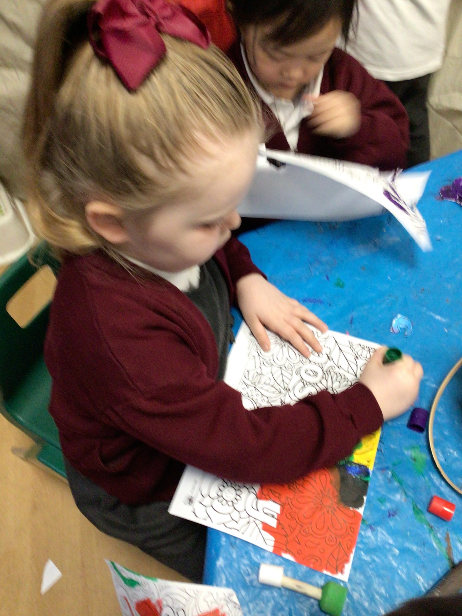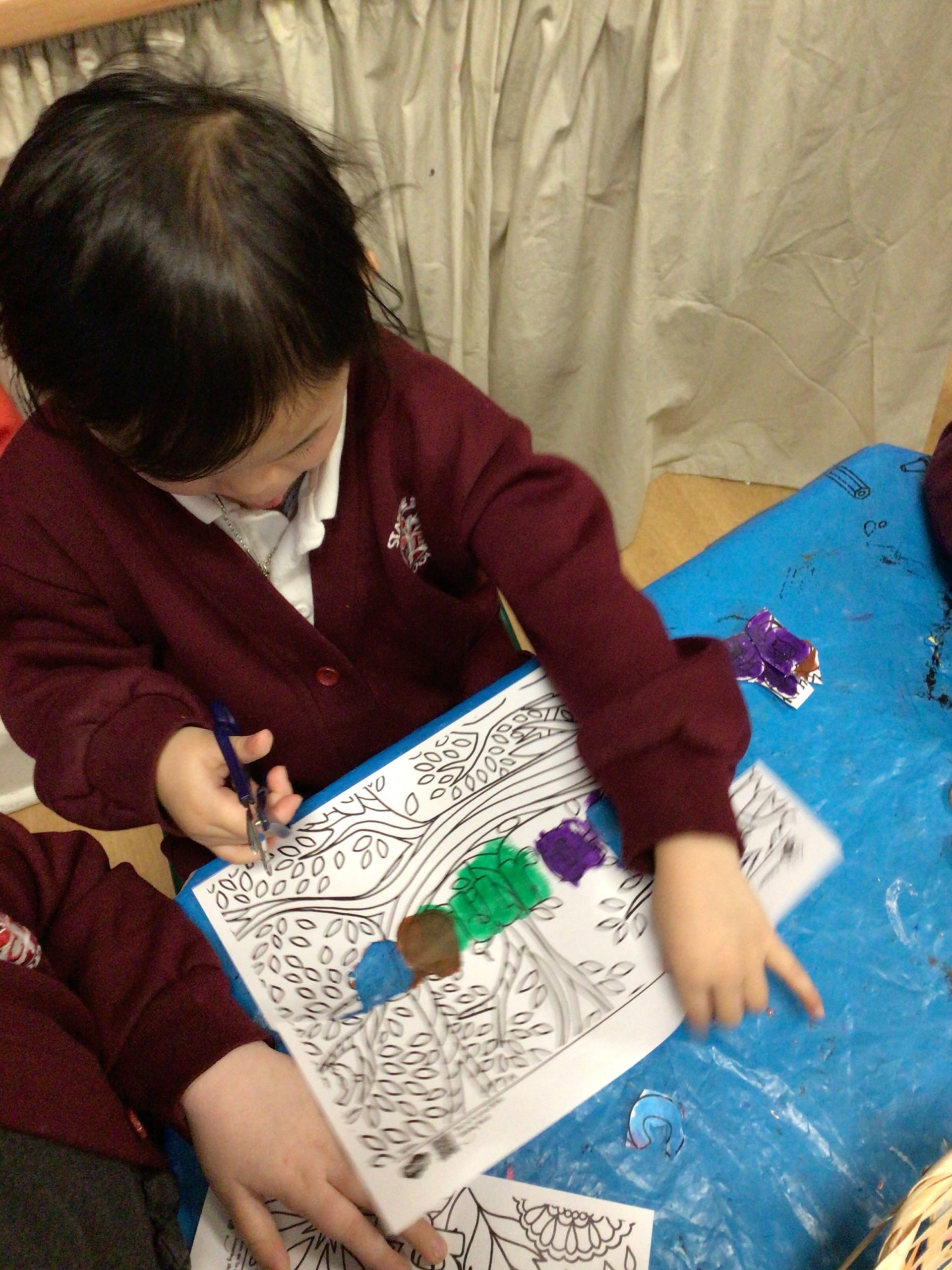 In Reception, the children explore, use and refine a variety of artistic effects to express their ideas and feelings. They love exploring their creativity through drawing, cutting, and making with a variety of materials. These activities allow them to practise important fine-motor skills, such as using scissors, choosing and placing small objects, and making careful marks on paper. As they experiment with colours, shapes, and textures, they express their ideas, build confidence in using tools, and enjoy sharing their creations with friends. This open-ended play encourages imagination, independence, and lots of joyful learning.