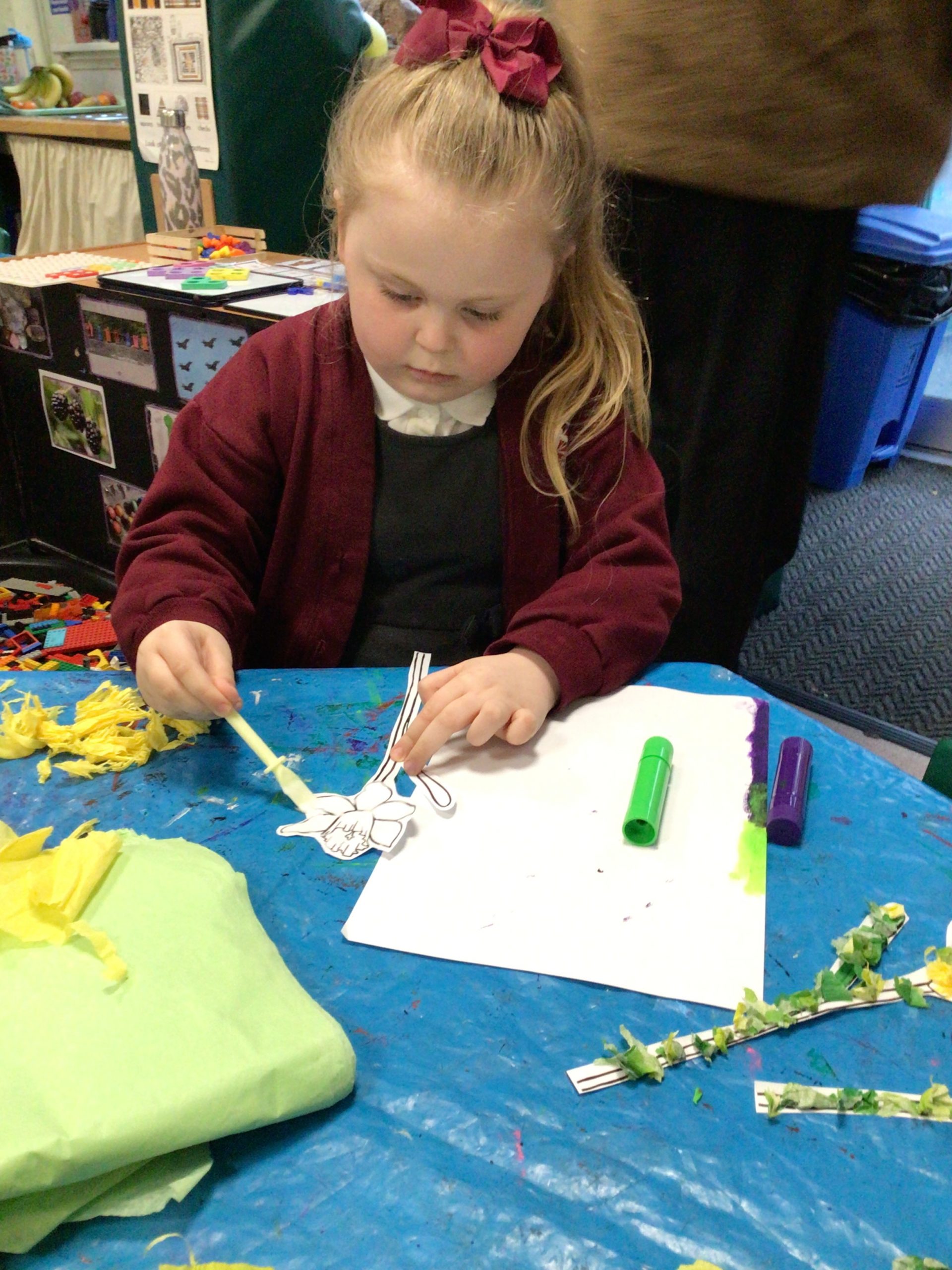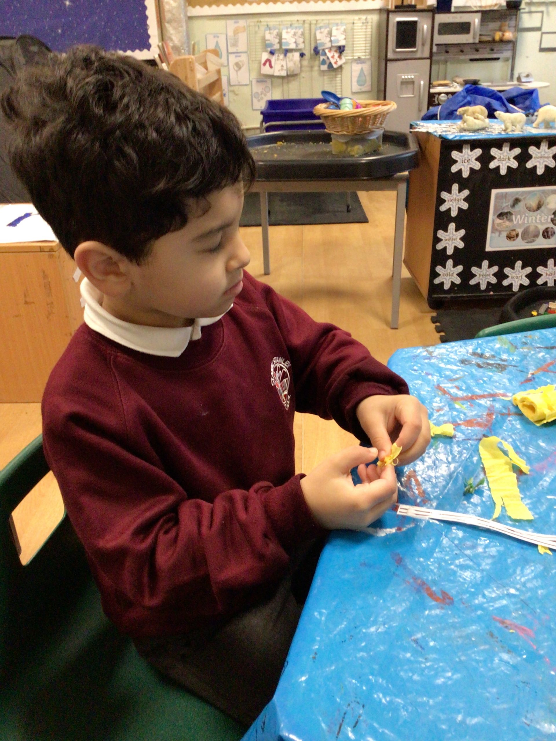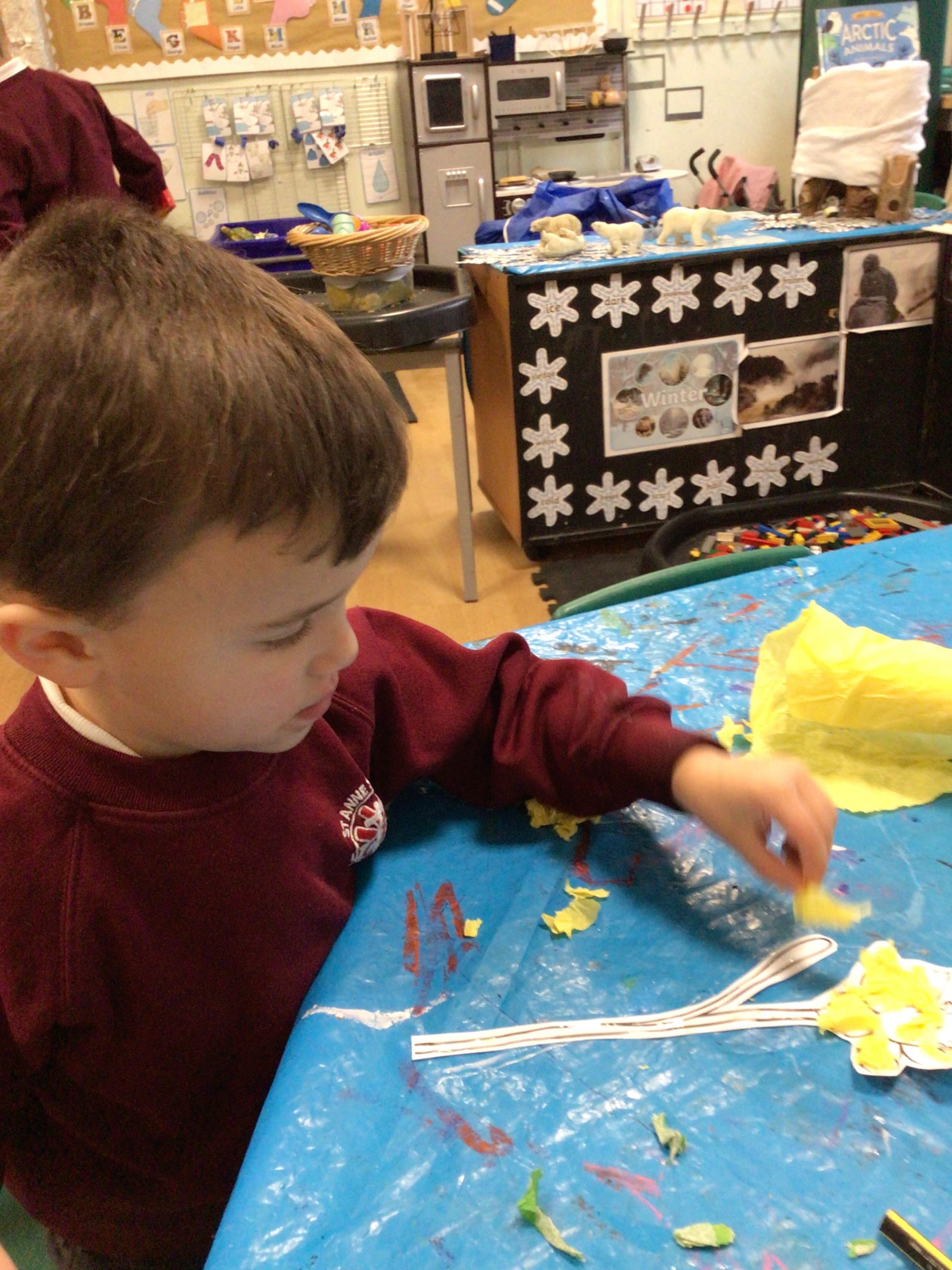 In Reception, the children explore, use and refine a variety of artistic effects to express their ideas and feelings. They love exploring their creativity through drawing, cutting, and making with a variety of materials. These activities allow them to practise important fine-motor skills, such as using scissors, choosing and placing small objects, and making careful marks on paper. As they experiment with colours, shapes, and textures, they express their ideas, build confidence in using tools, and enjoy sharing their creations with friends. This open-ended play encourages imagination, independence, and lots of joyful learning.