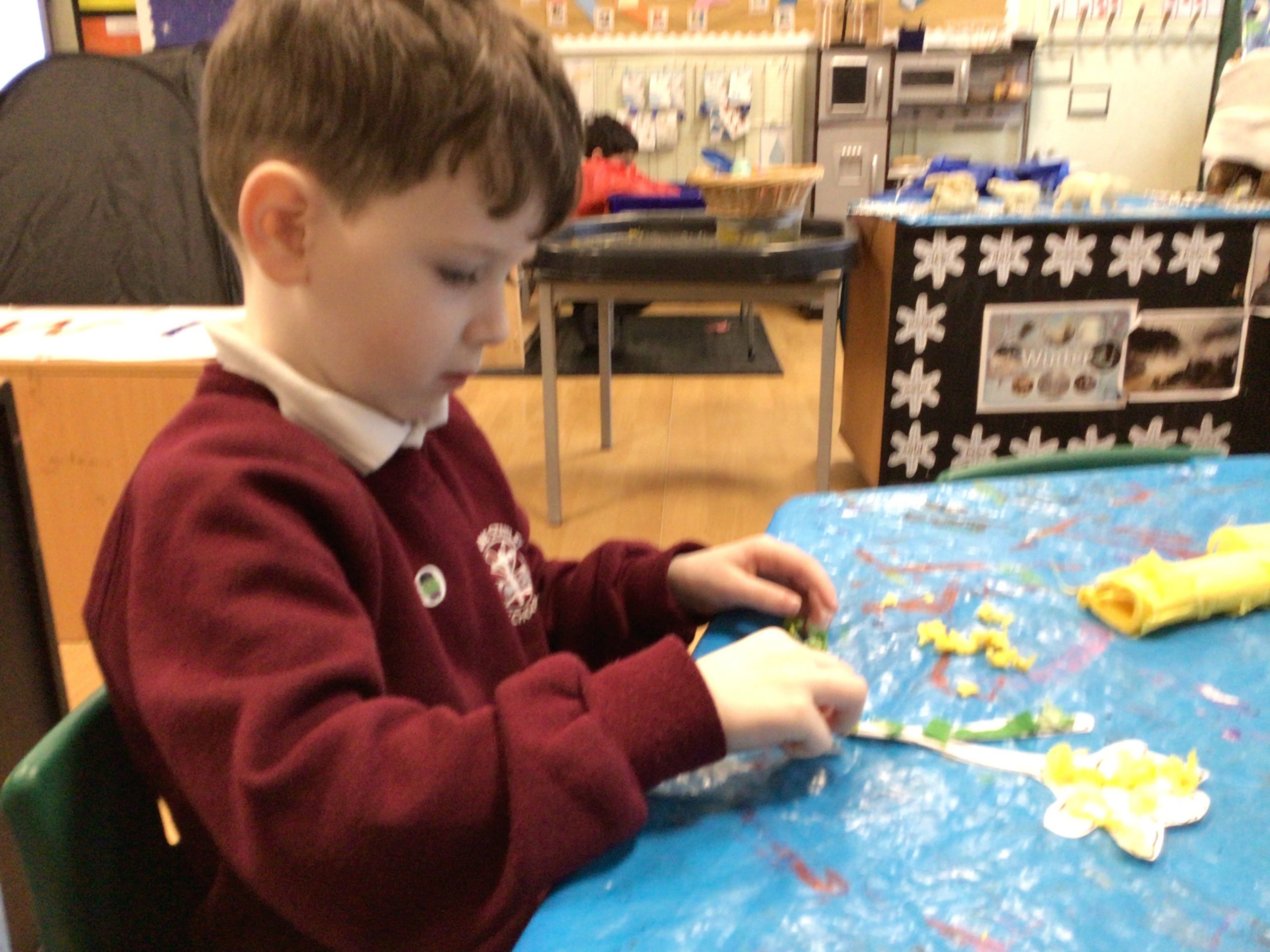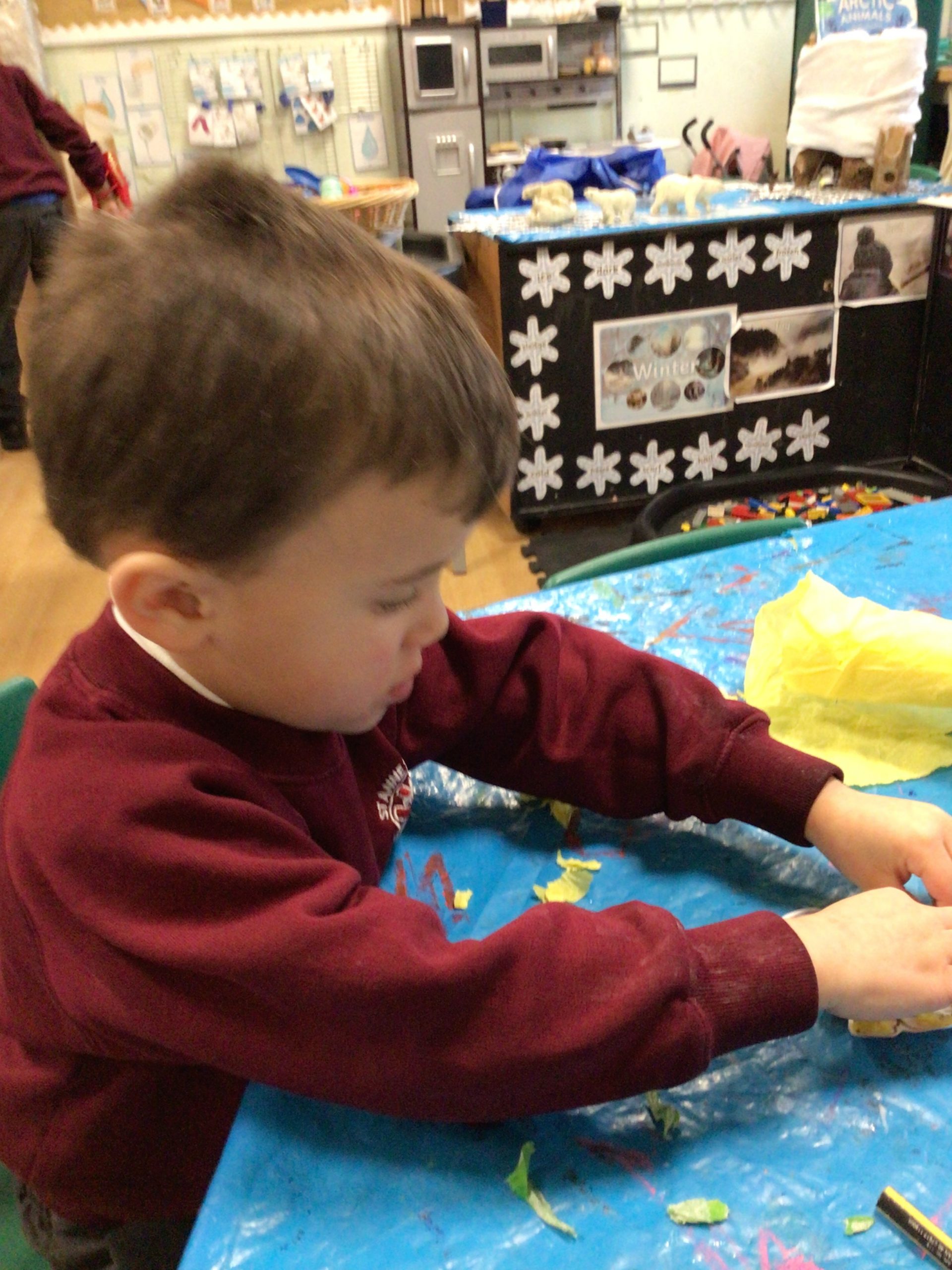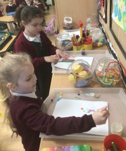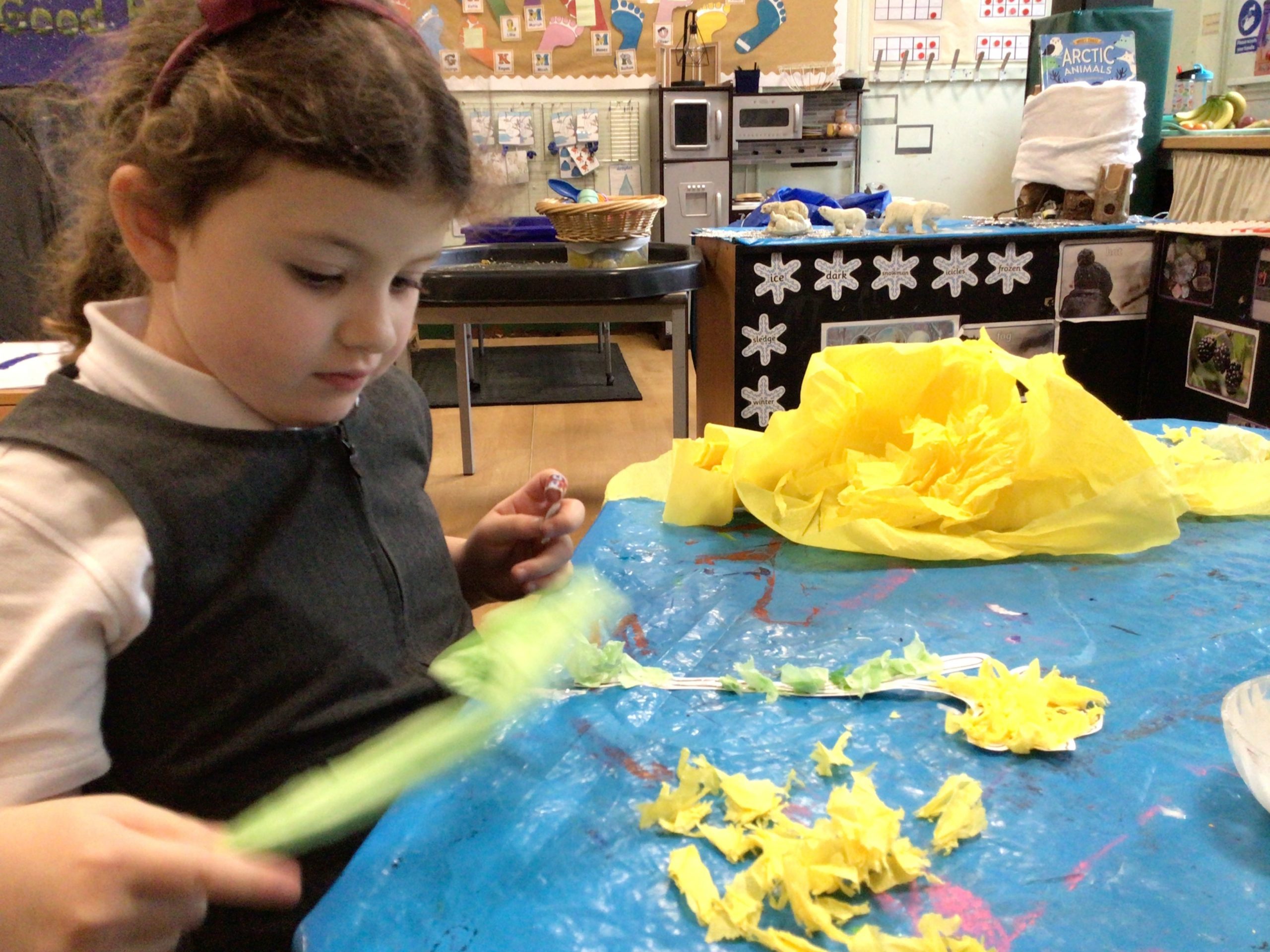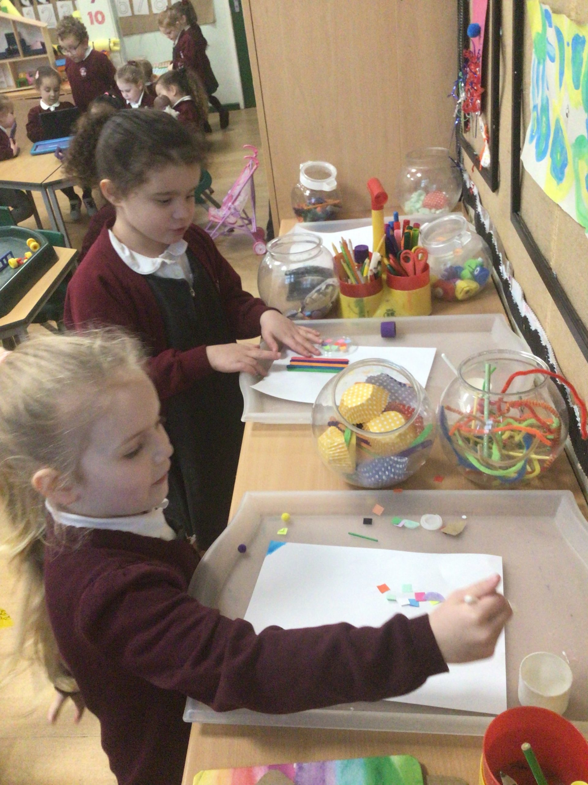 In Reception, the children explore, use and refine a variety of artistic effects to express their ideas and feelings. They love exploring their creativity through drawing, cutting, and making with a variety of materials. These activities allow them to practise important fine-motor skills, such as using scissors, choosing and placing small objects, and making careful marks on paper. As they experiment with colours, shapes, and textures, they express their ideas, build confidence in using tools, and enjoy sharing their creations with friends. This open-ended play encourages imagination, independence, and lots of joyful learning.