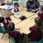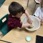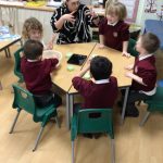 Reception are comparing number through play. Who has threaded the most? “I have the most because mine is the longest”. Let’s count and check.”