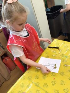 I can quickly recognise up to 3 objects, without having to count them individually (‘subitising’). I can recite numbers past 5. I can say one number for each item in order: 1,2,3,4,5 and I know that the last number reached when counting a small set of objects tells you how many there are in total (‘cardinal principle’). I can show ‘finger numbers’ up to 5 and link numerals and amounts: for example, showing the right number of objects to match the numeral, up to 5. I can experiment with my own symbols and marks as well as numerals and solve real world mathematical problems with numbers up to 5. I can compare quantities using language: ‘more than’, ‘fewer than’. I talk about and explore 2D and 3D shapes (for example, circles, rectangles, triangles and cuboids) using mathematical language: ‘sides’, ‘corners’; ‘straight’, ‘flat’, ‘round’. I understand position and can describe a familiar route. I can discuss routes and locations, using words like ‘in front of’ and ‘behind’. I make comparisons between objects relating to size, length, weight and capacity. I select shapes appropriately: flat surfaces for building, a triangular prism for a roof, etc and combine shapes to make new ones – an arch, a bigger triangle, etc. I can talk about and identify the patterns around me and use informal language like ‘pointy’, ‘spotty’, ‘blobs’, etc. I can extend and create ABAB patterns – stick, leaf, stick, leaf. and notice and correct an error in a repeating pattern. I am beginning to describe a sequence of events using words such as ‘first’, ‘then…’