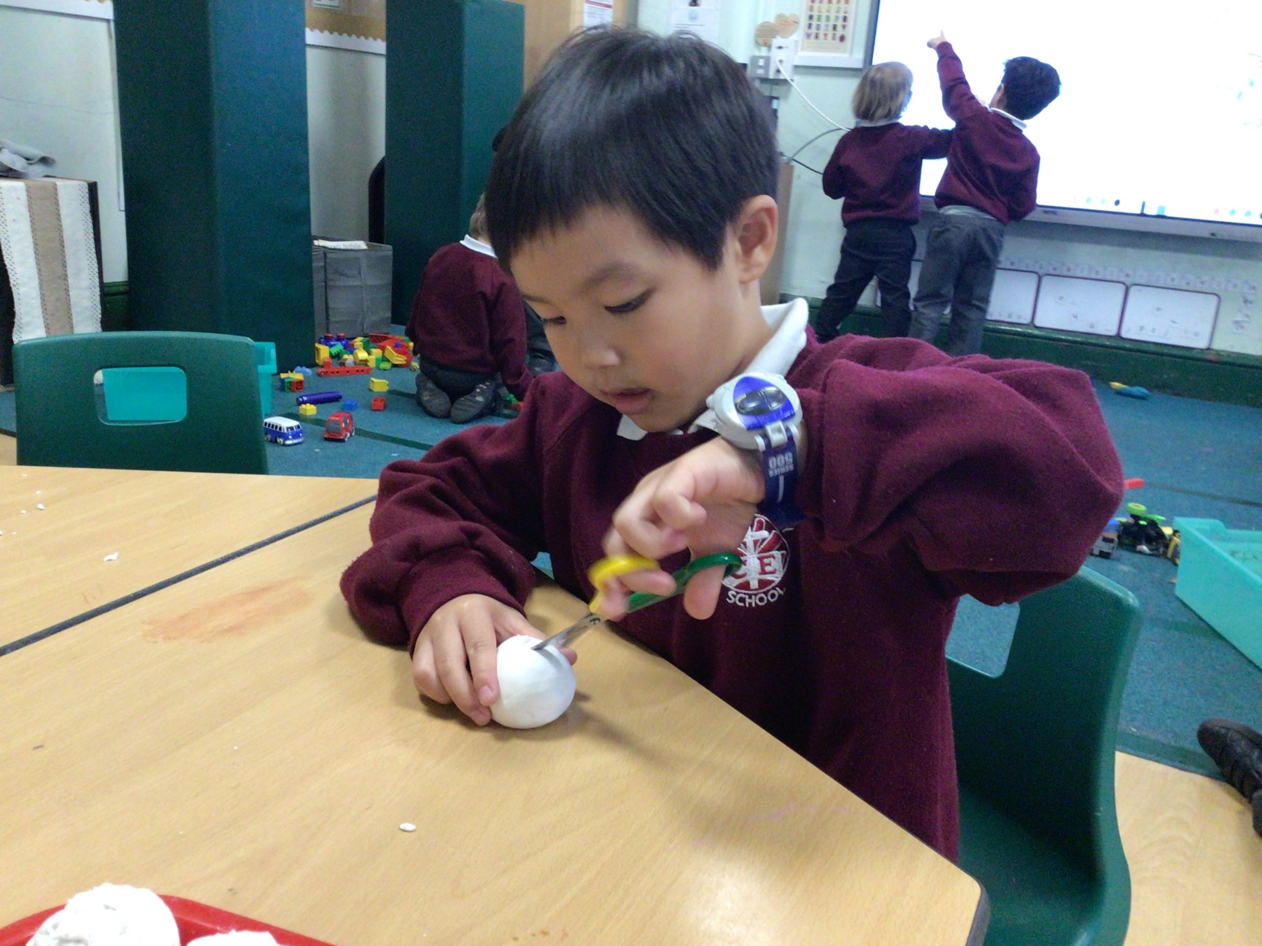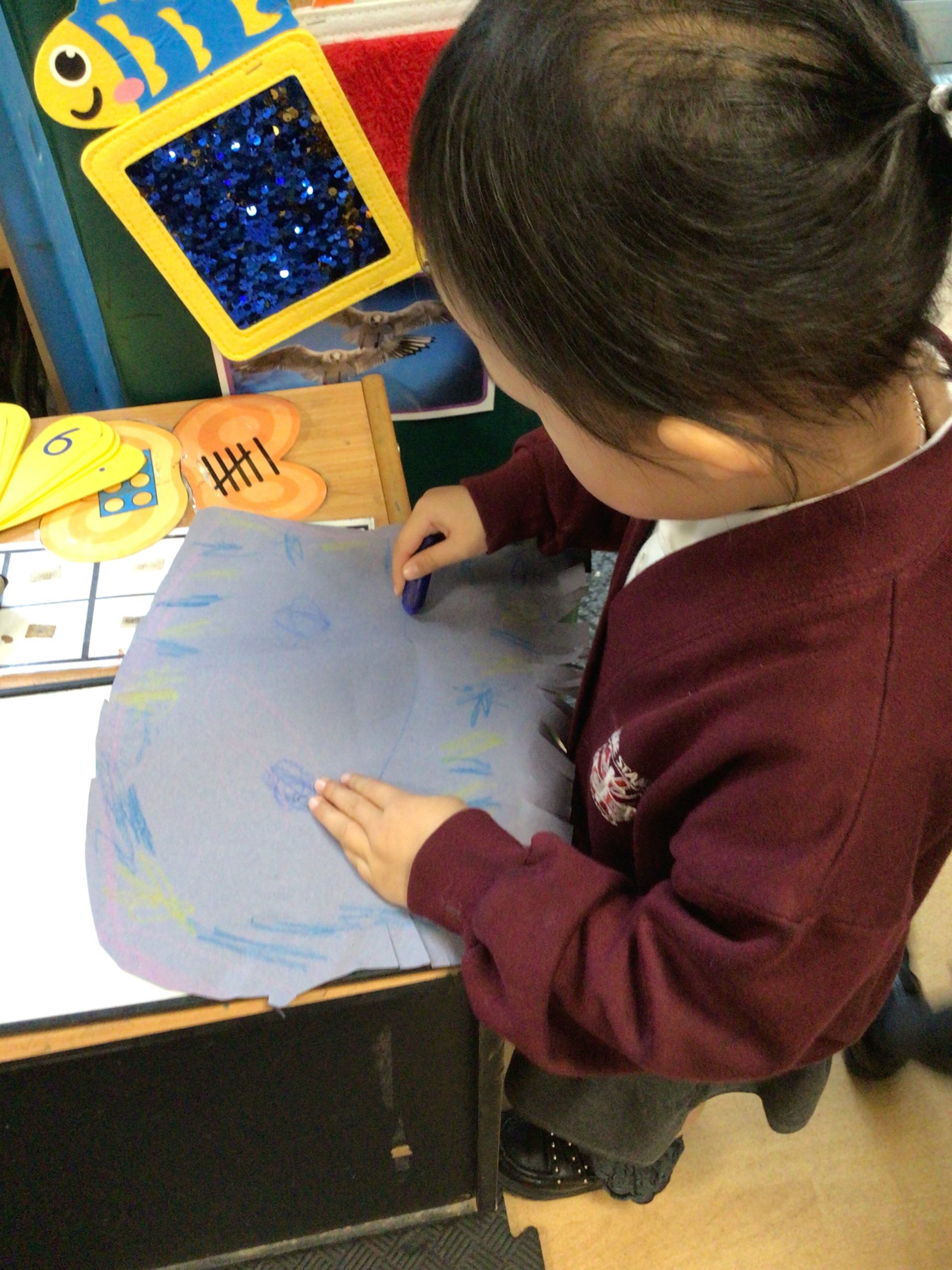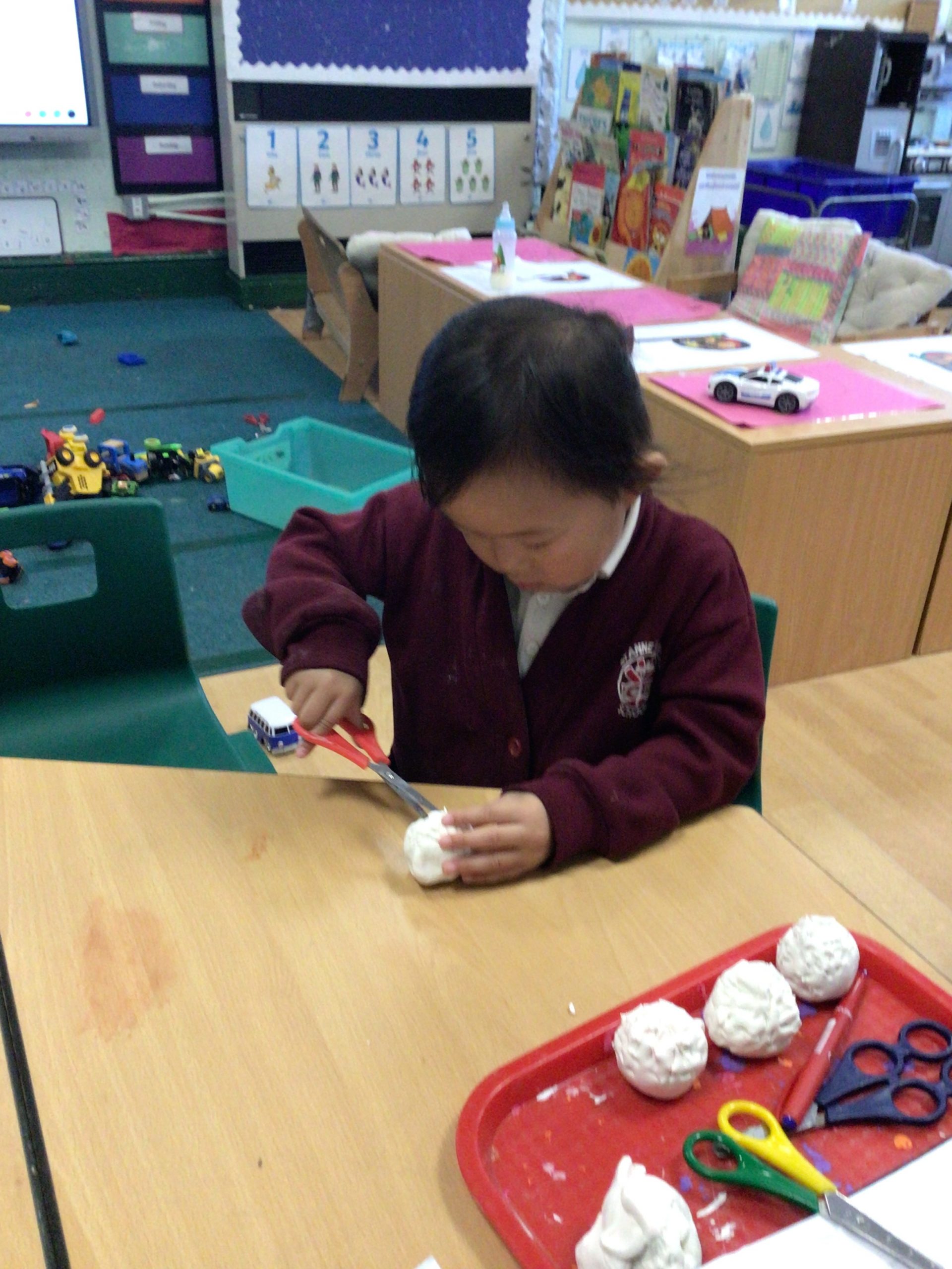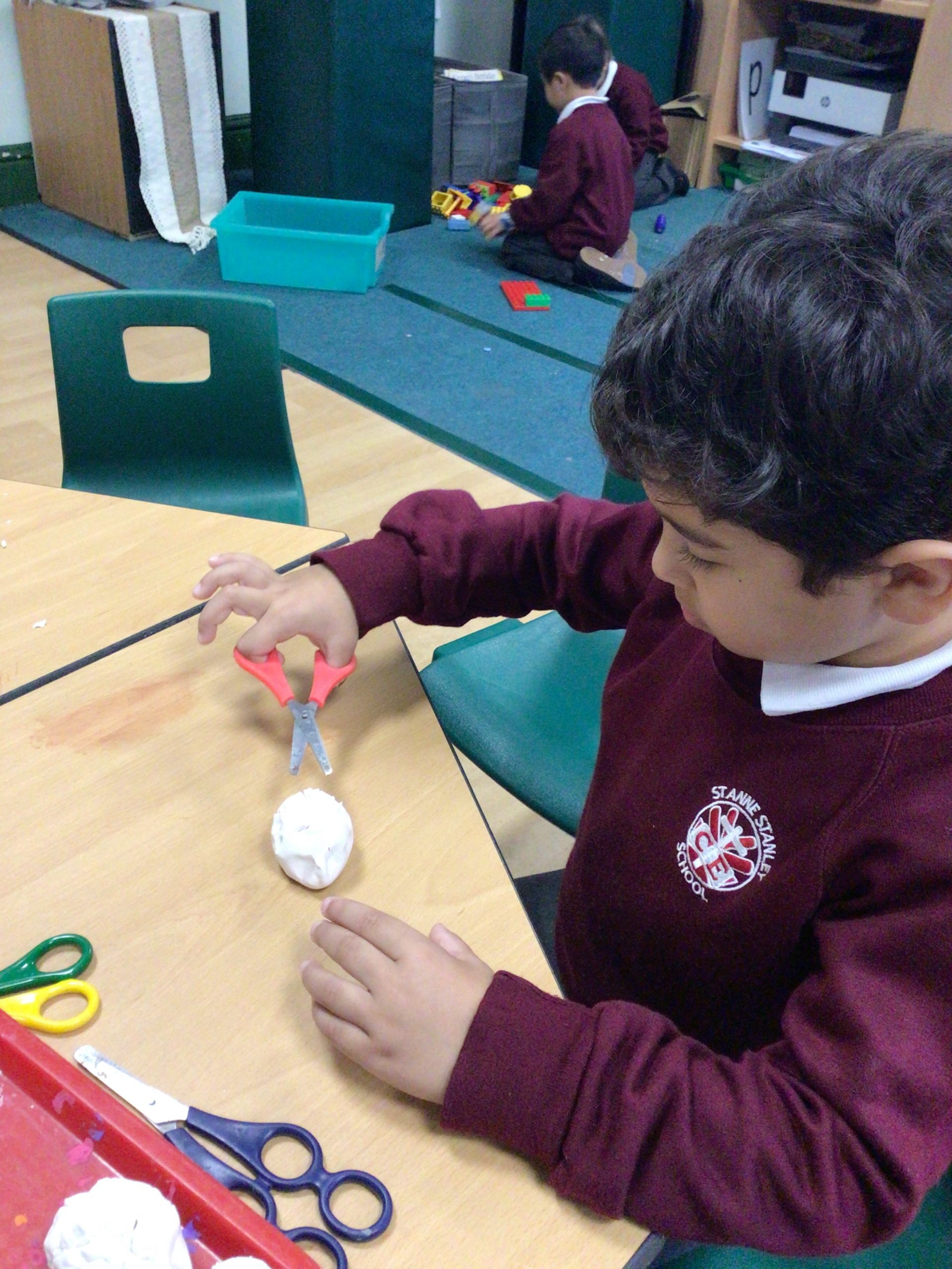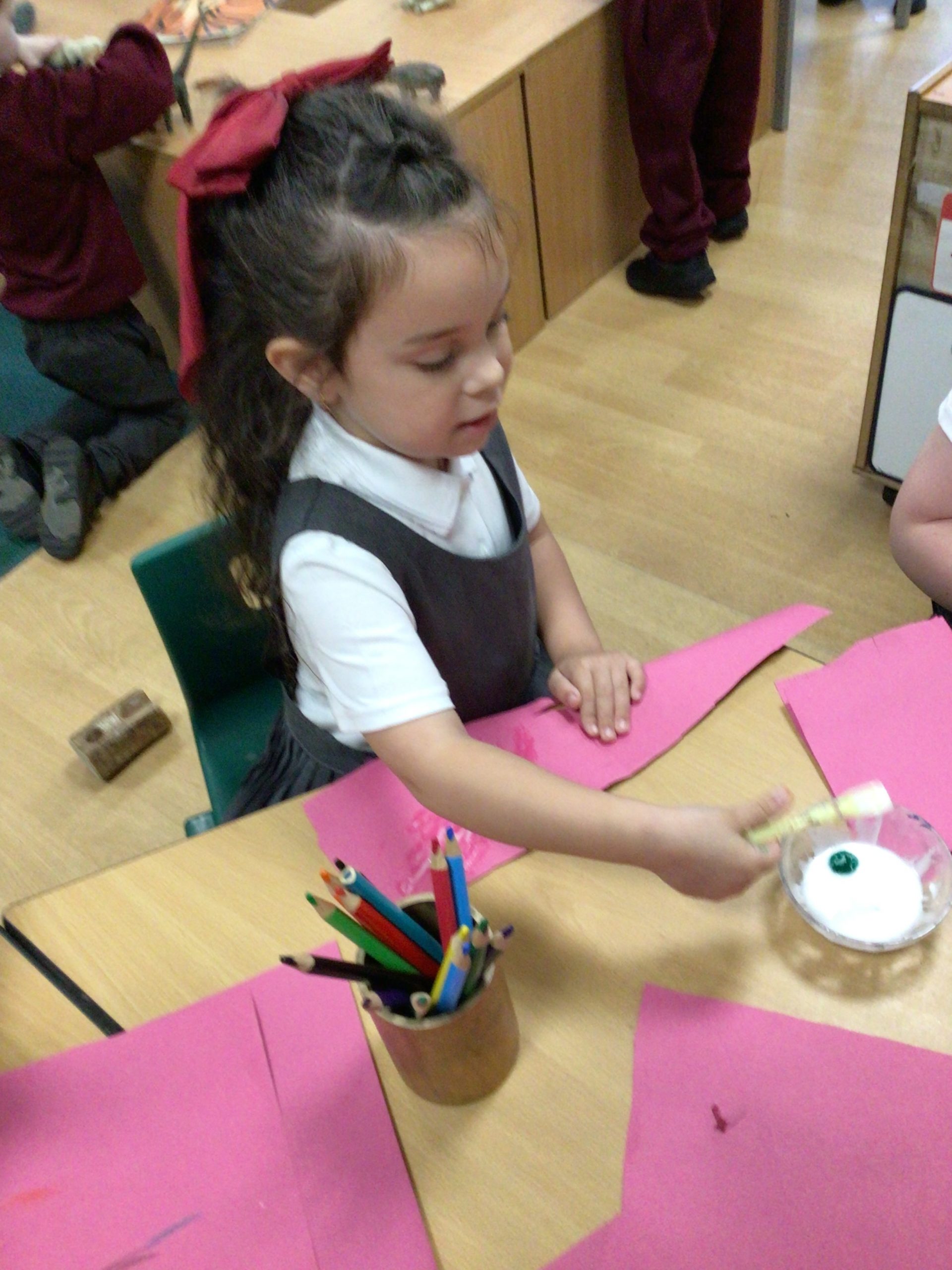 Reception are developing our small motor skills so that we can use a range of tools competently, safely and confidently. Reception are using a range of tools to independently create materials that follow our interests.