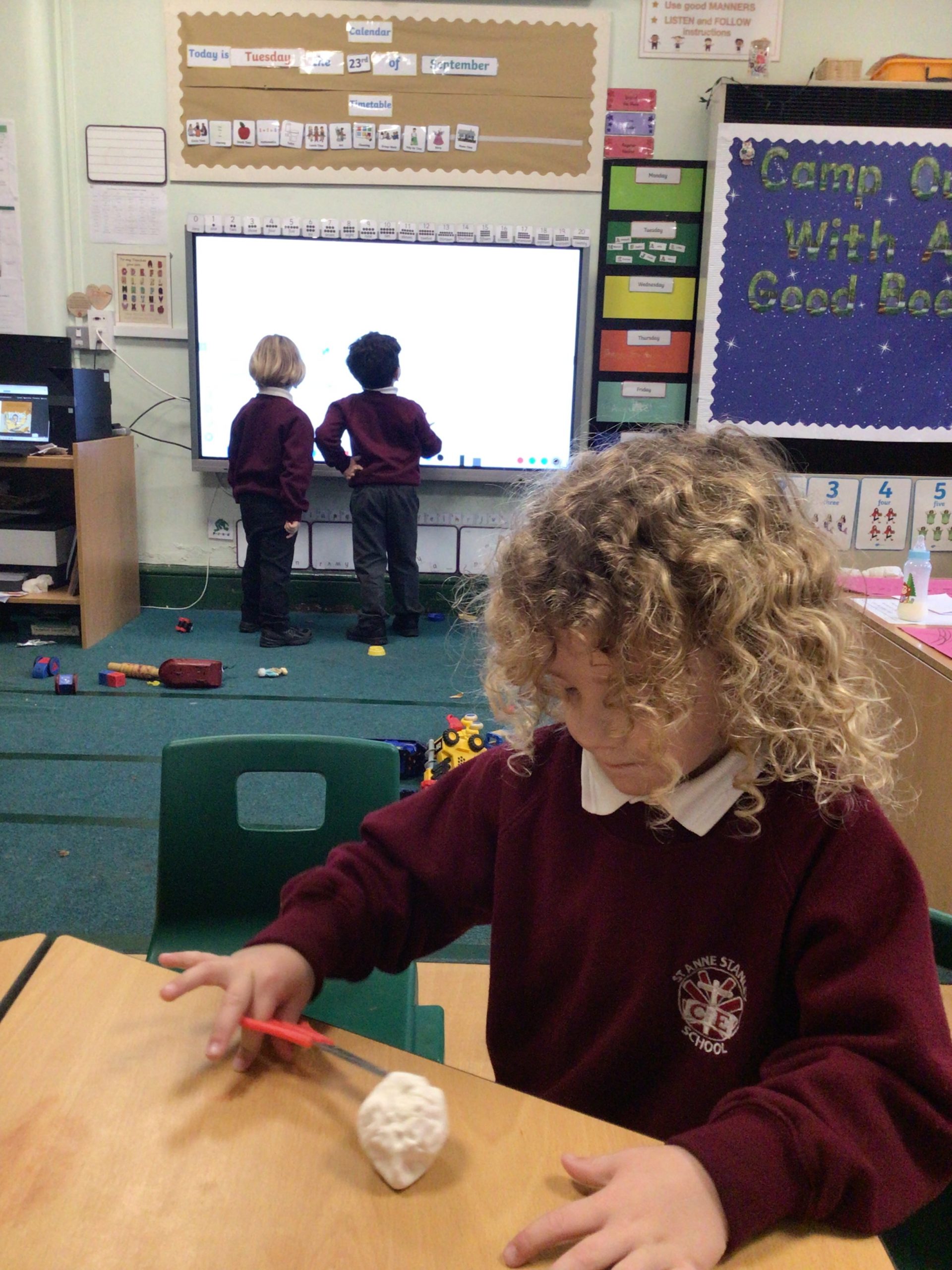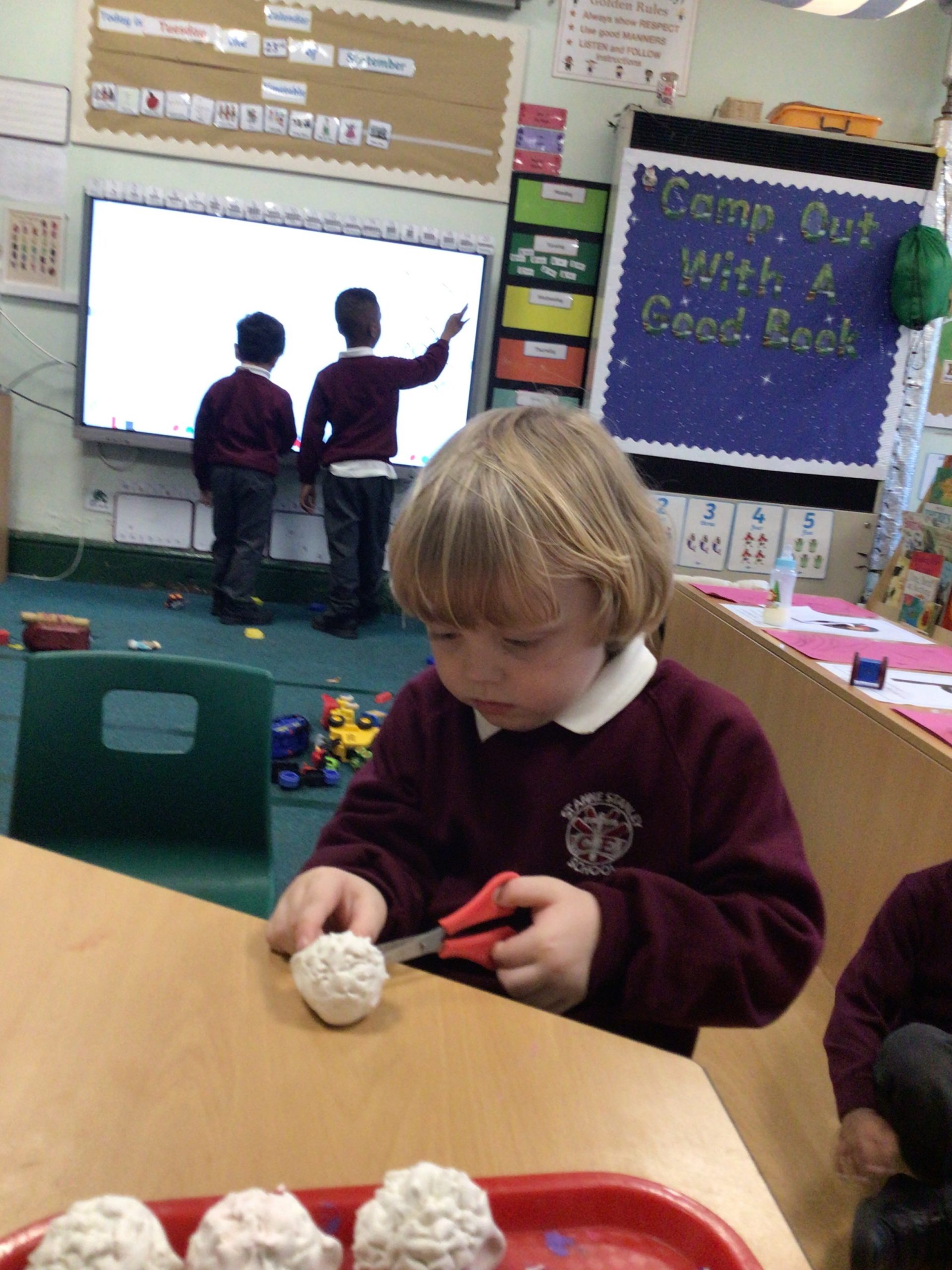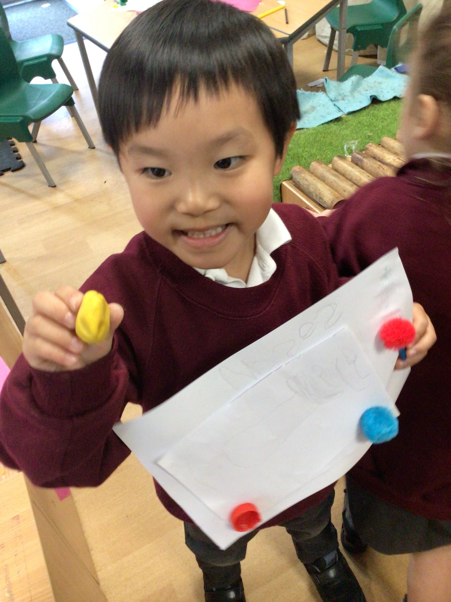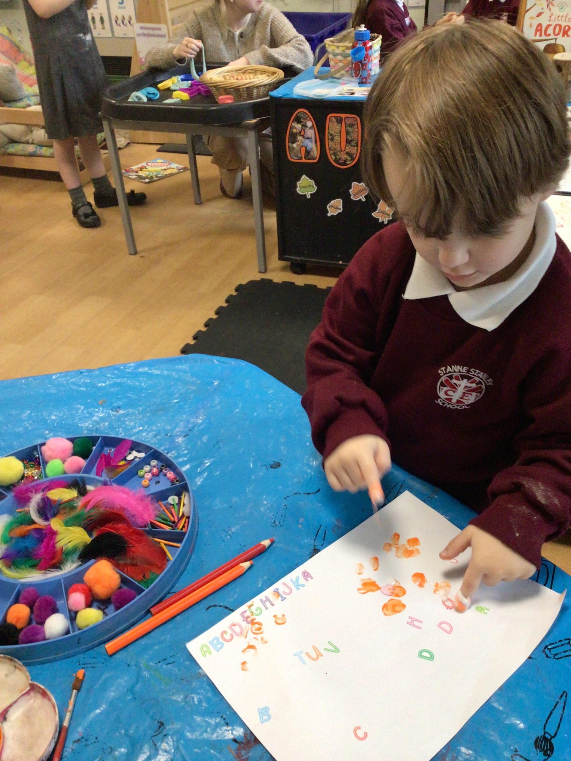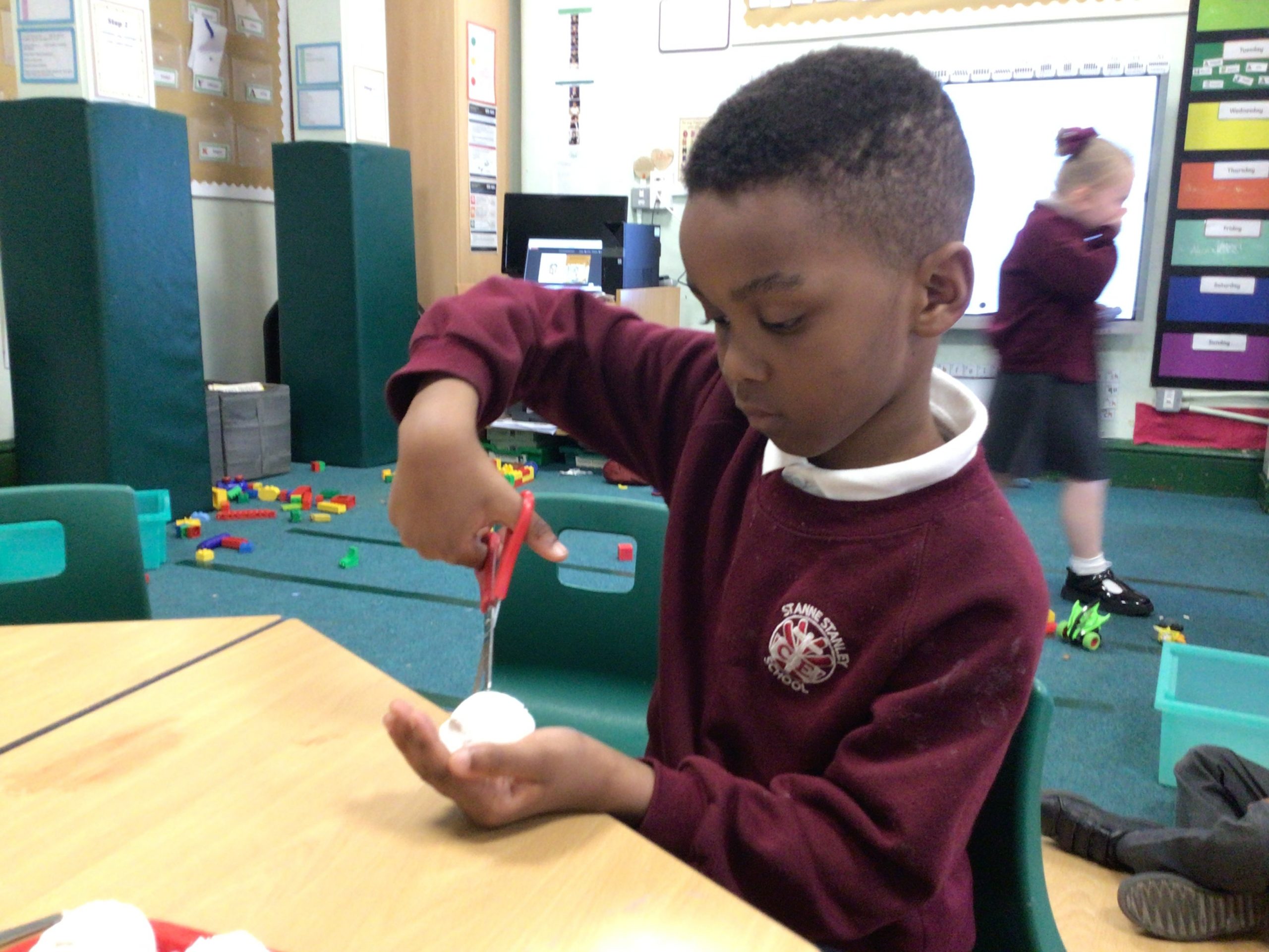 Reception are developing our small motor skills so that we can use a range of tools competently, safely and confidently. Reception are using a range of tools to independently create materials that follow our interests.
