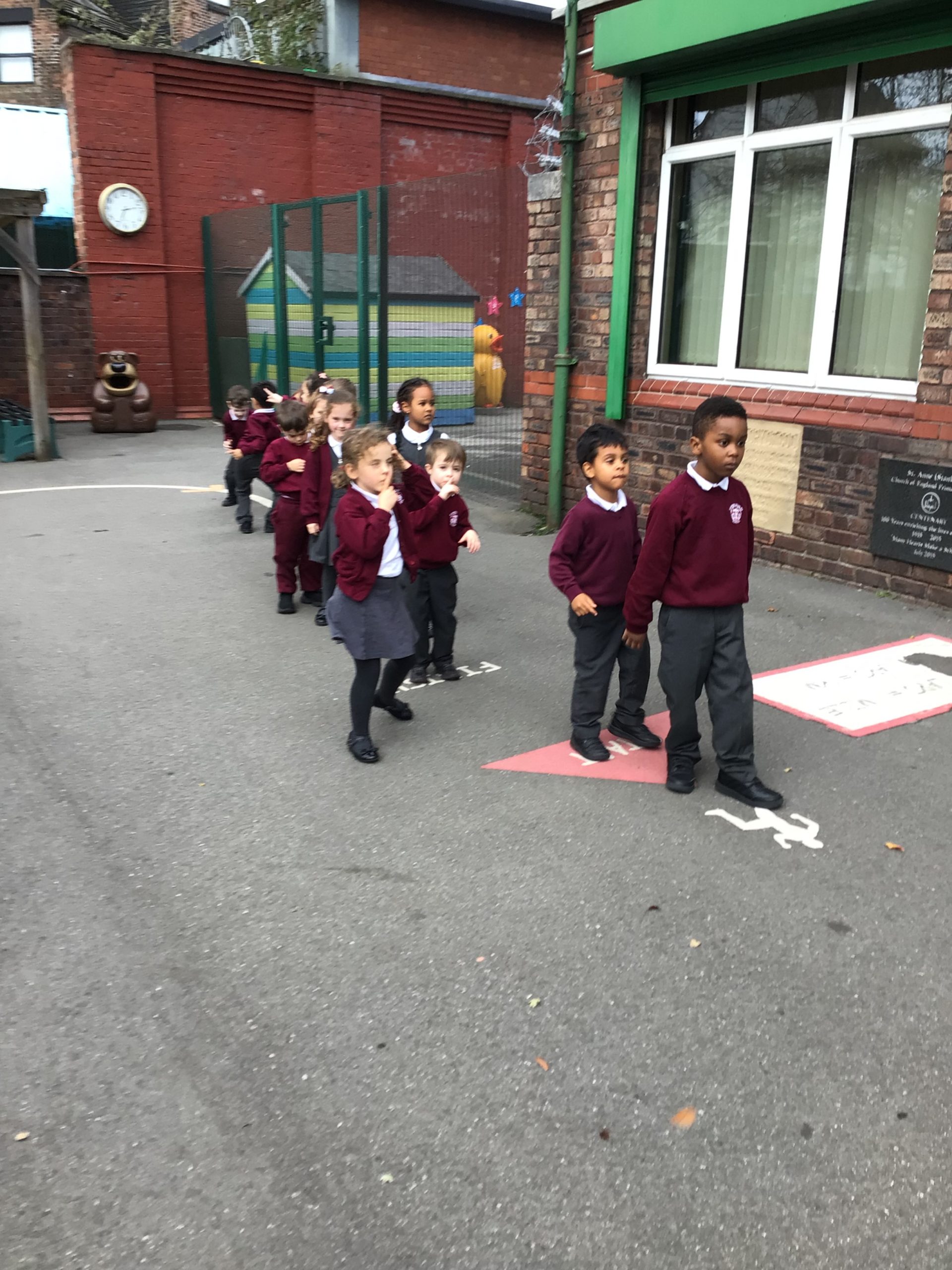 - Further develop the skills they need to manage the school day successfully: lining up and queuing at mealtimes.