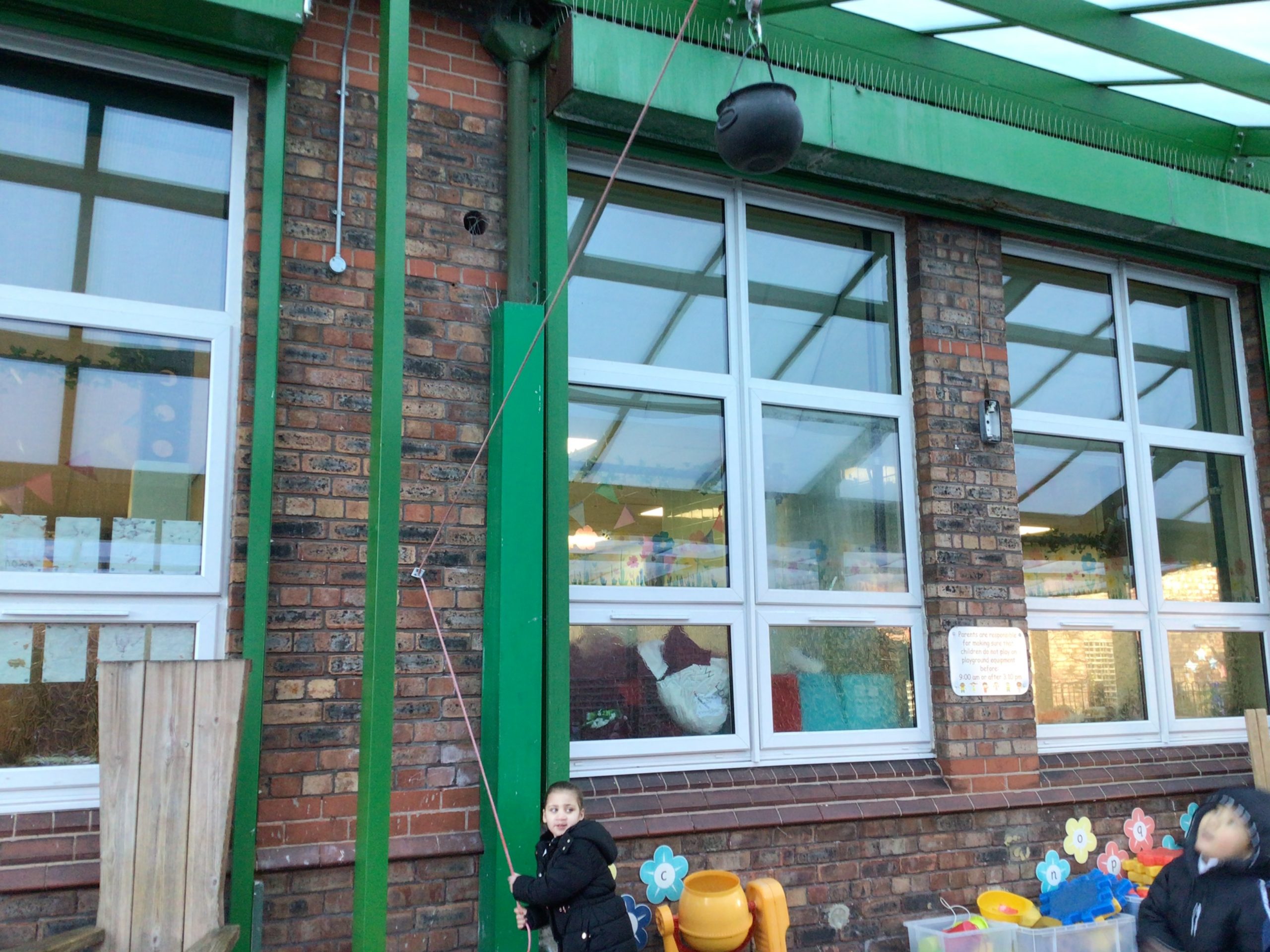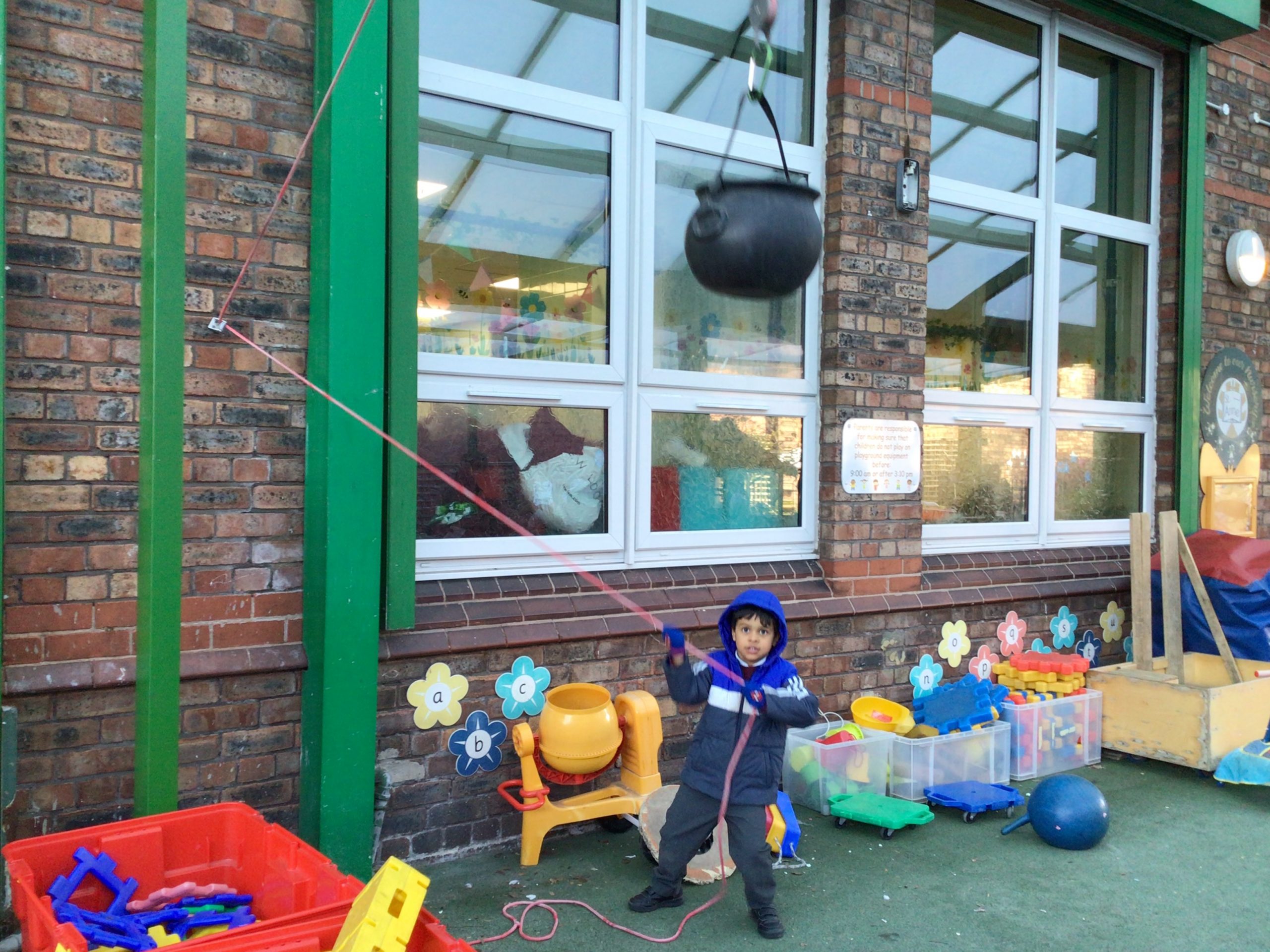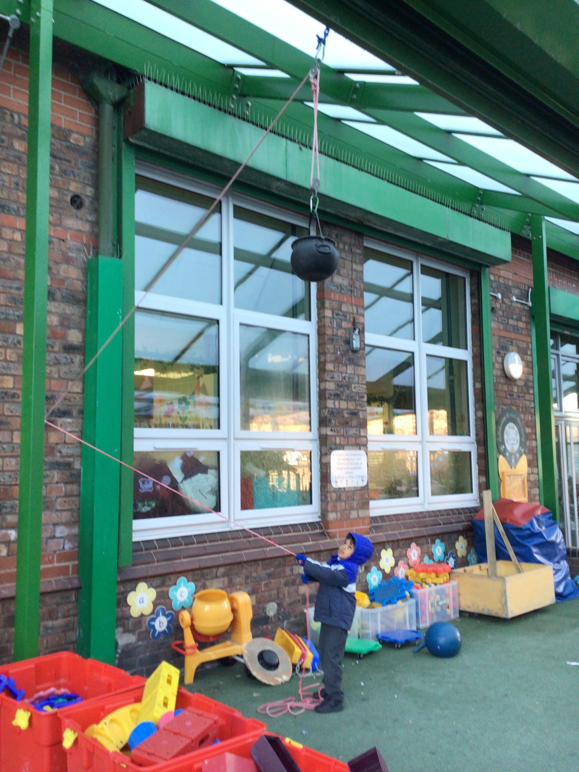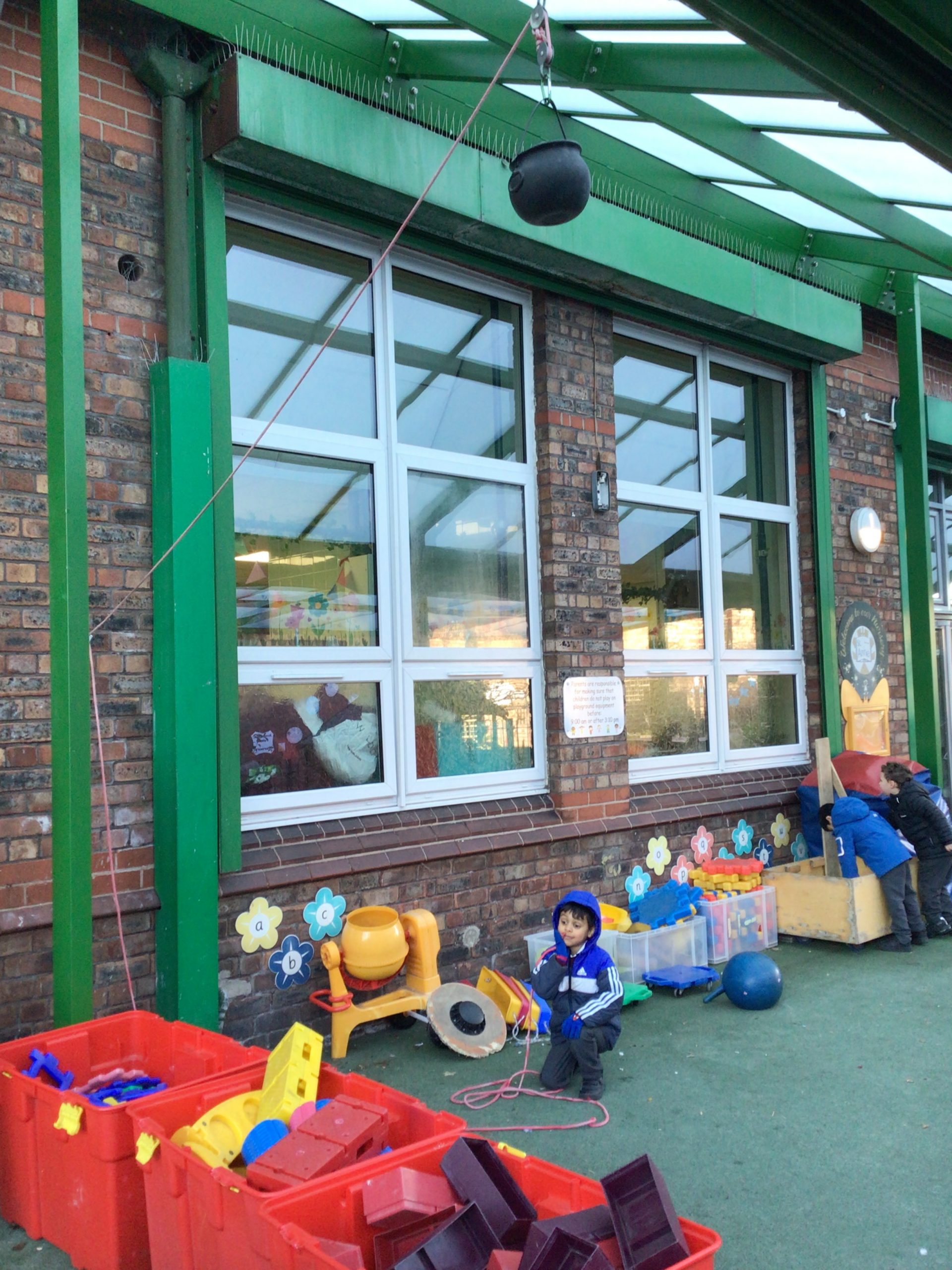 There will be lots of time for me to play and learn within the indoor and outdoor environment. The outdoors has recently had a bigger canopy added with shutters which can be pulled down if the weather demands. We do have all-in-one waterproofs and wellies available whenever needed.