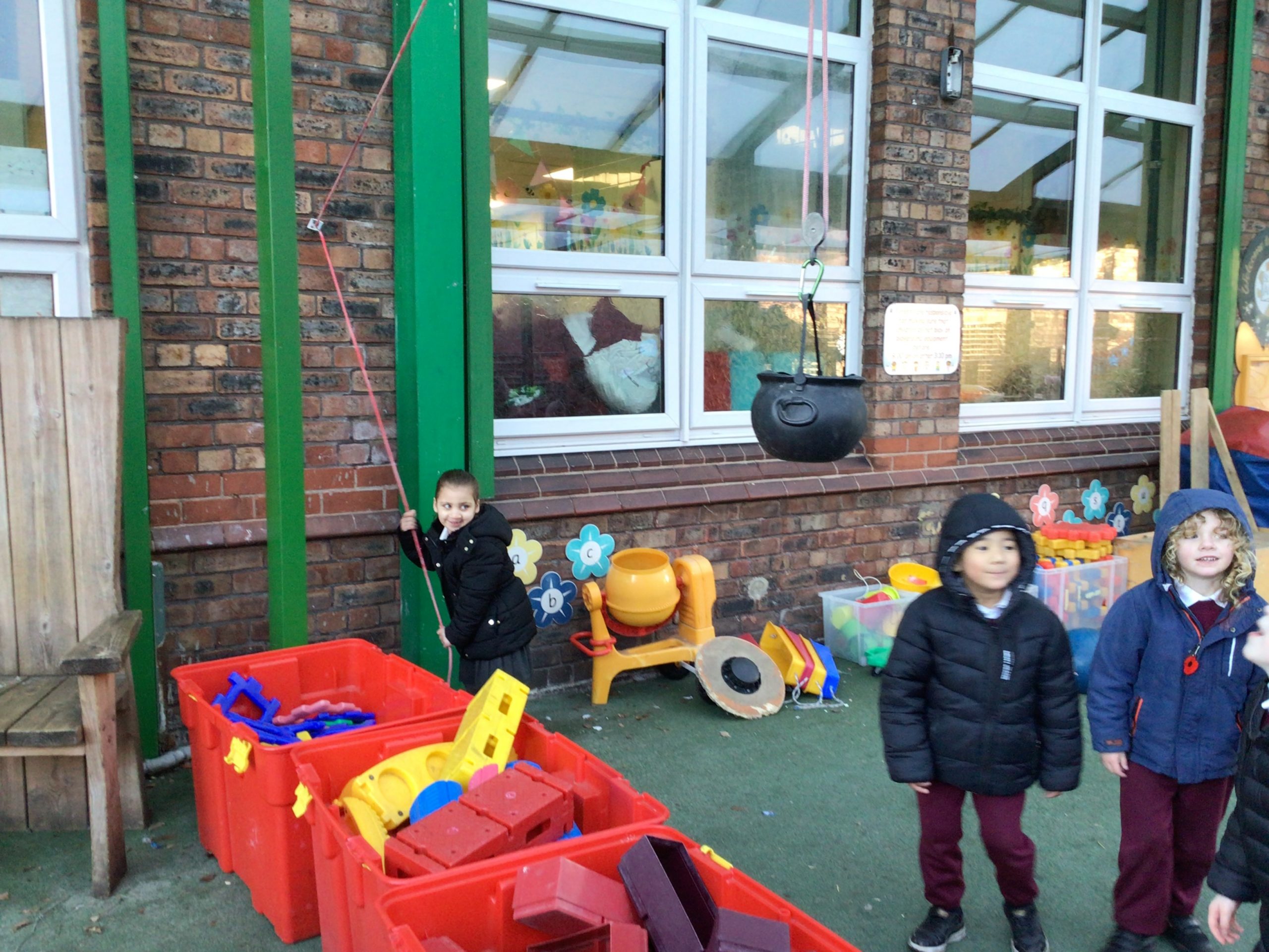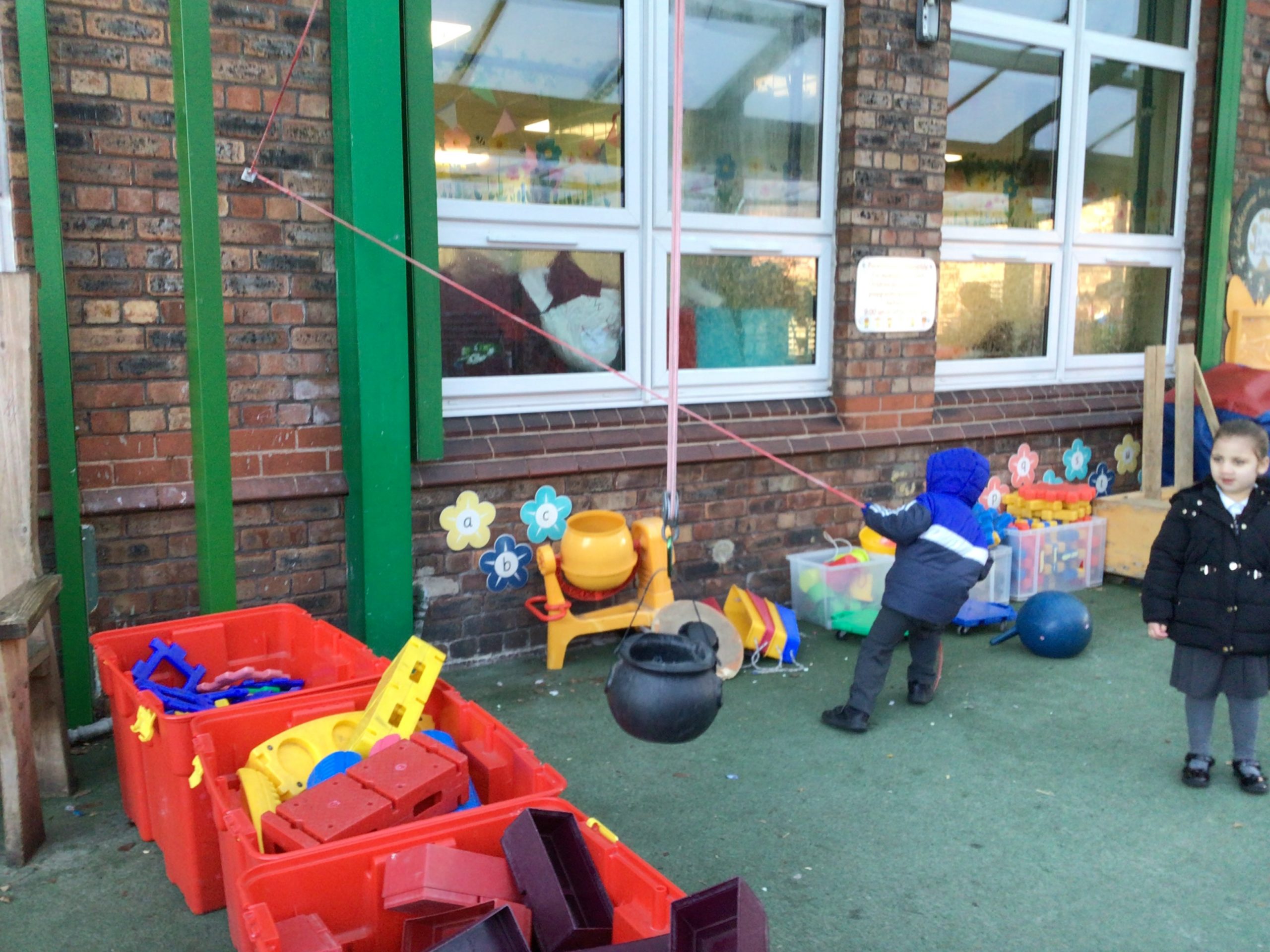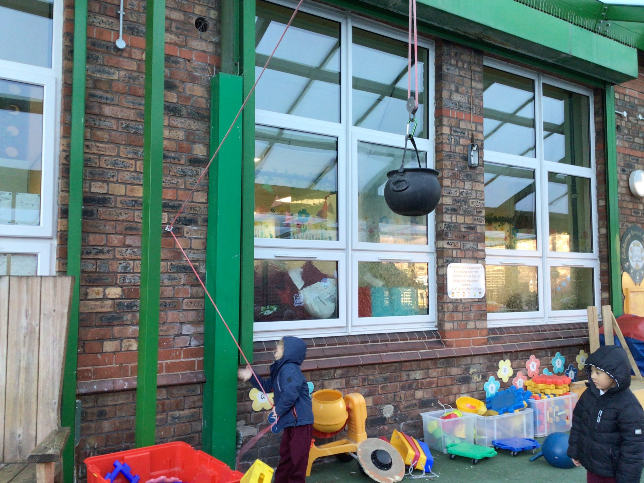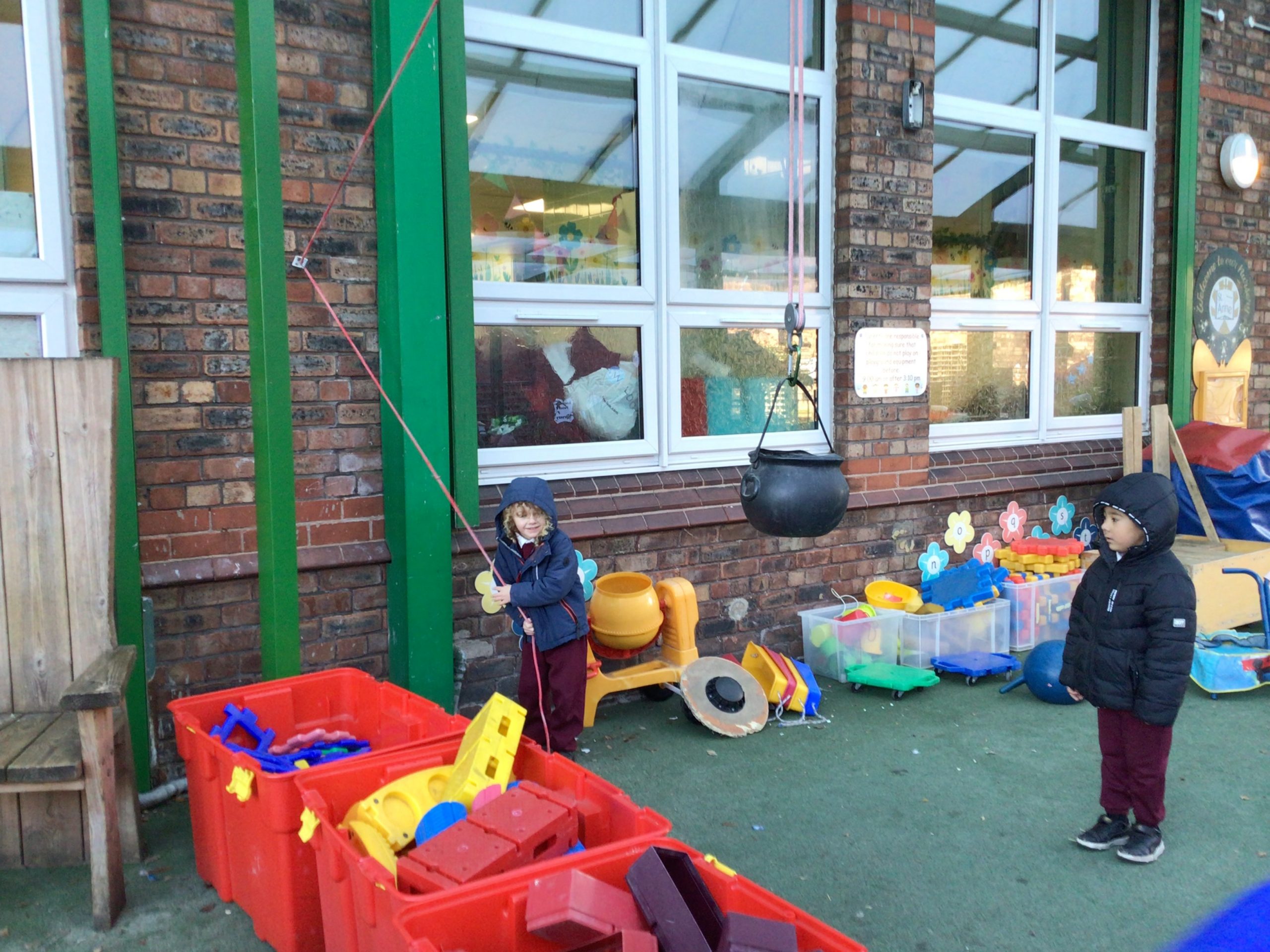 There will be lots of time for me to play and learn within the indoor and outdoor environment. The outdoors has recently had a bigger canopy added with shutters which can be pulled down if the weather demands. We do have all-in-one waterproofs and wellies available whenever needed.