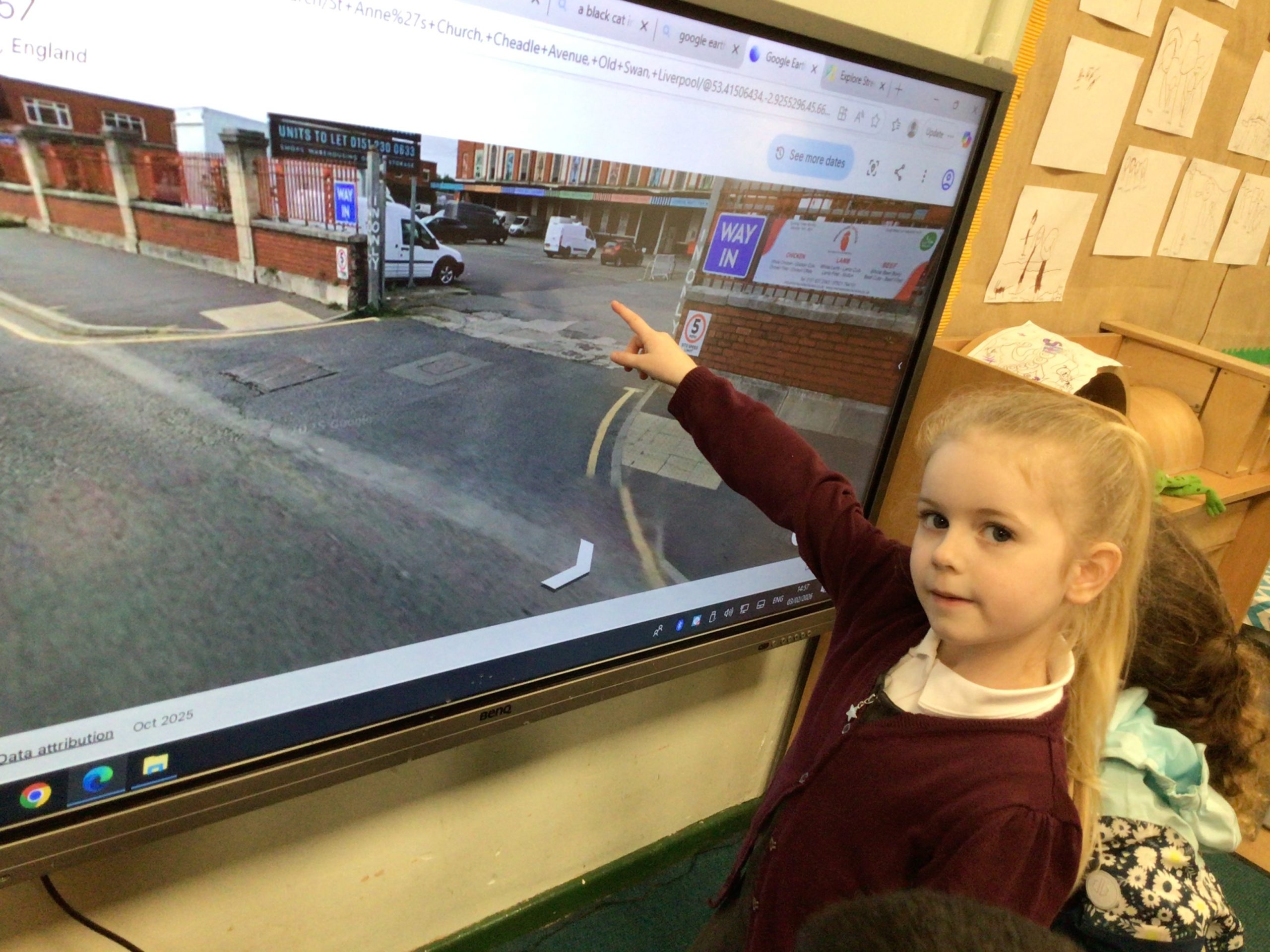“Look that’s my dad. He’s eating pizza. Look I’ve done his hair all curly”. |