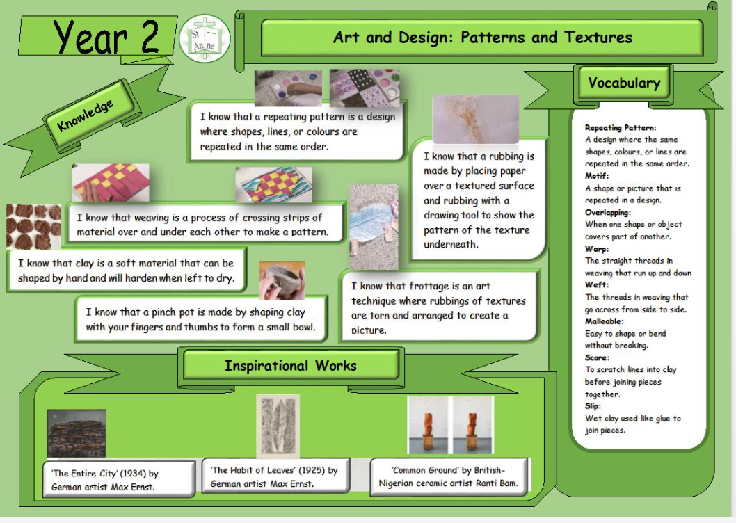 Links to Art and Design Curriculum: Year 2 Patterns and Textures Topic